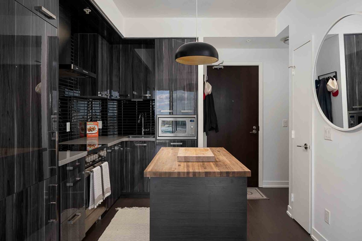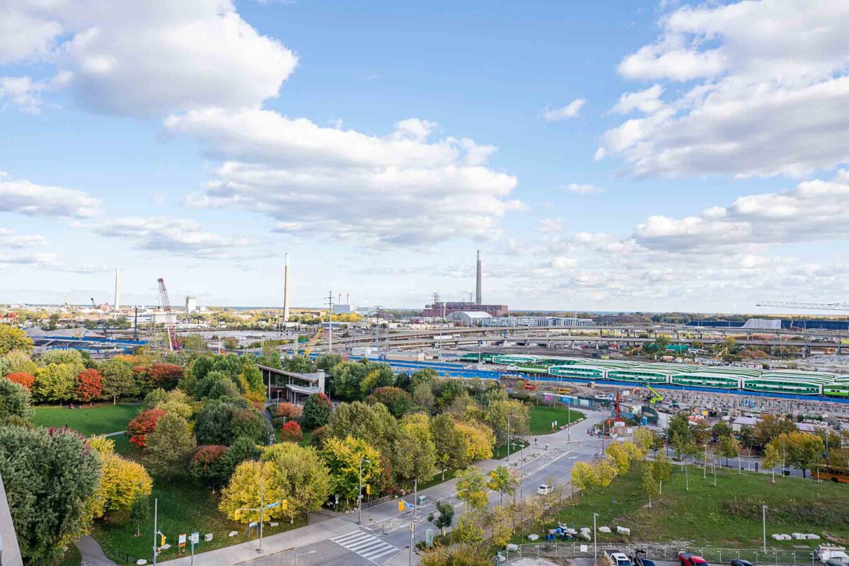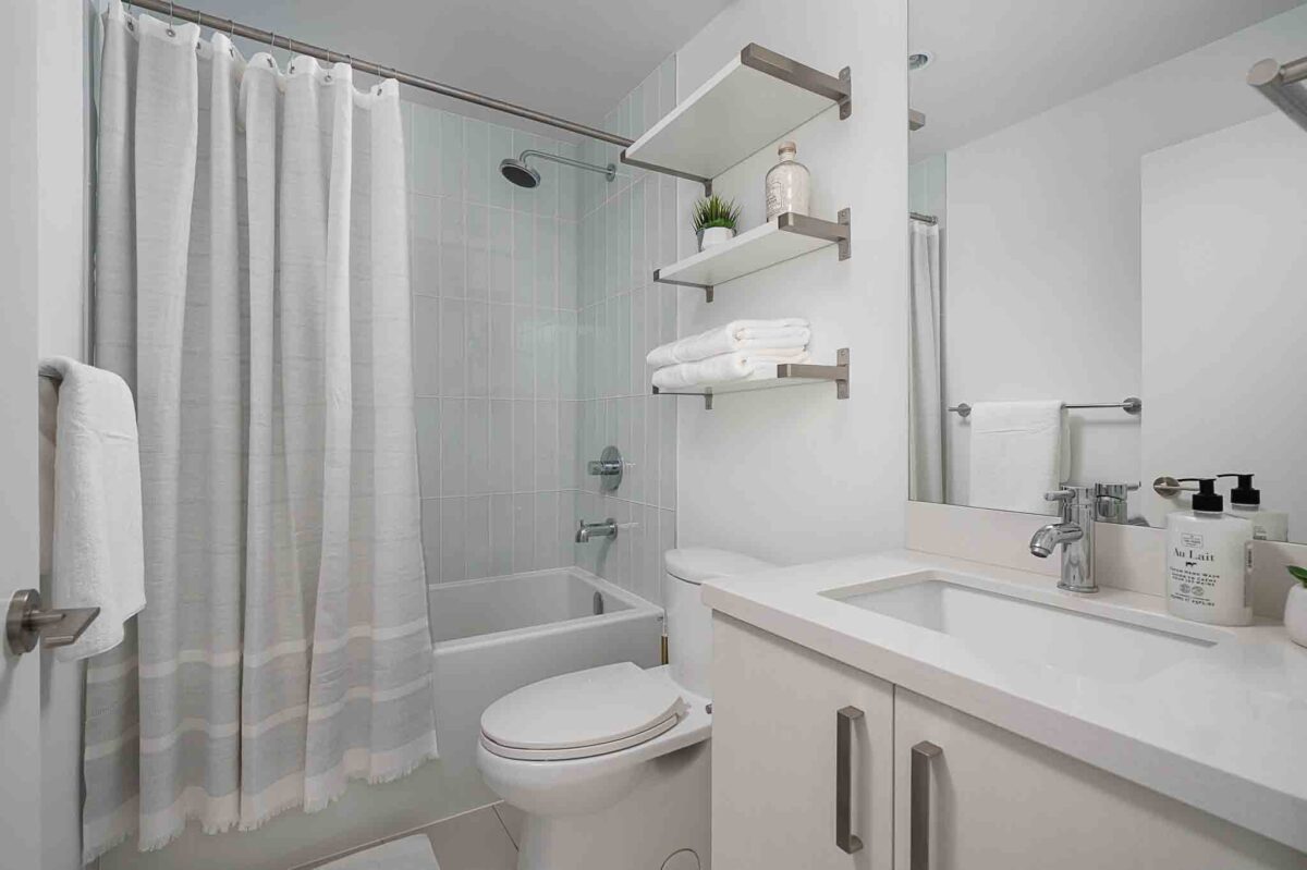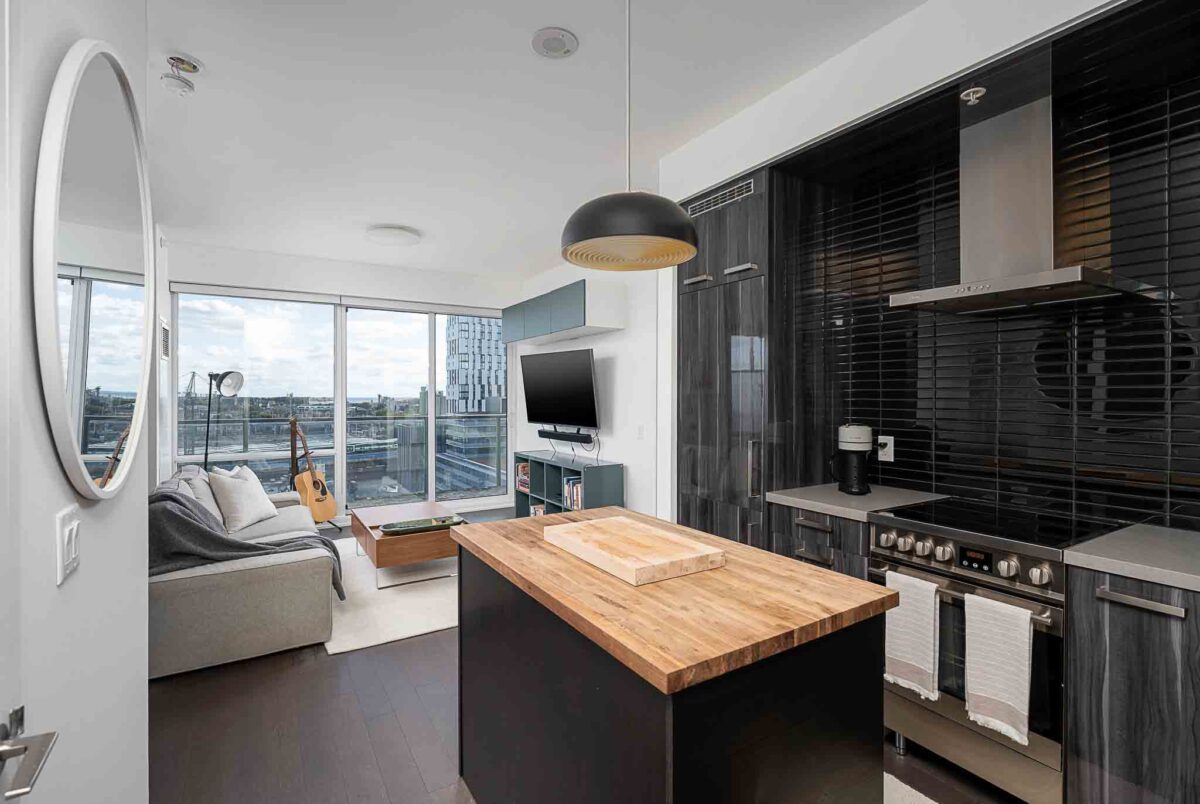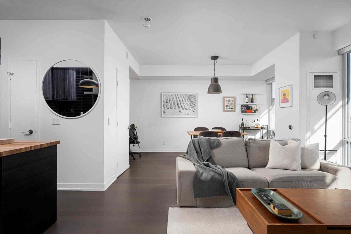 Bathed in natural light, this beautifully designed residence at 120 Bayview Avenue offers a spacious, functional layout in the heart of Toronto’s Canary District. Originally configured as a two-bedroom, two-bathroom suite, the home now presents as an airy open-concept one-bedroom with the option to easily re-install the second bedroom wall. Nine-foot ceilings, engineered hardwood floors, and full-height windows create a bright, contemporary feel throughout. The modern kitchen features integrated Liebherr, Porter & Charles, and Panasonic appliances, a functional island with added storage, and seamless connection to the living space that opens onto a large private terrace finished with wood decking—perfect for outdoor dining or relaxation. Complete with a walk-in closet in the primary bedroom, deep soaker tub, Nest thermostat, parking, locker, and unlimited Beanfield internet, this residence delivers the perfect blend of style, comfort, and community living steps from Corktown Common, the Distillery District, and the downtown core.