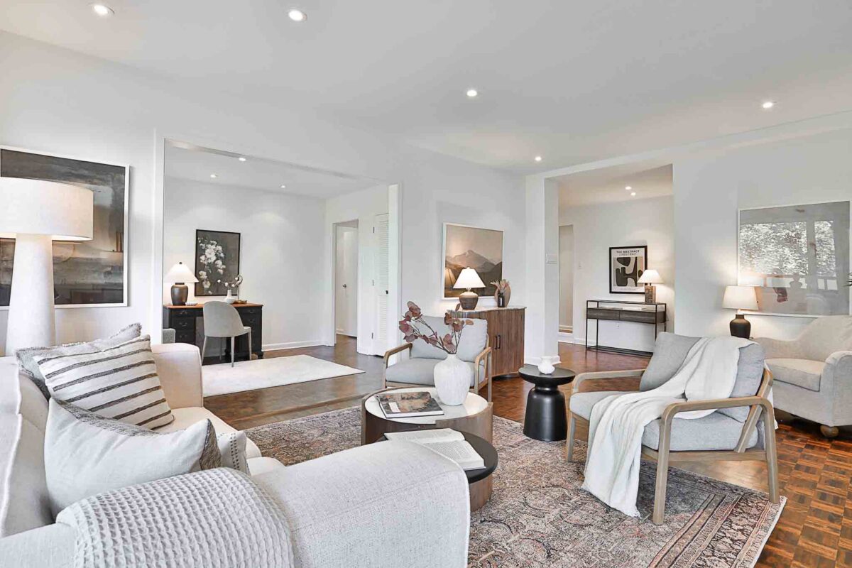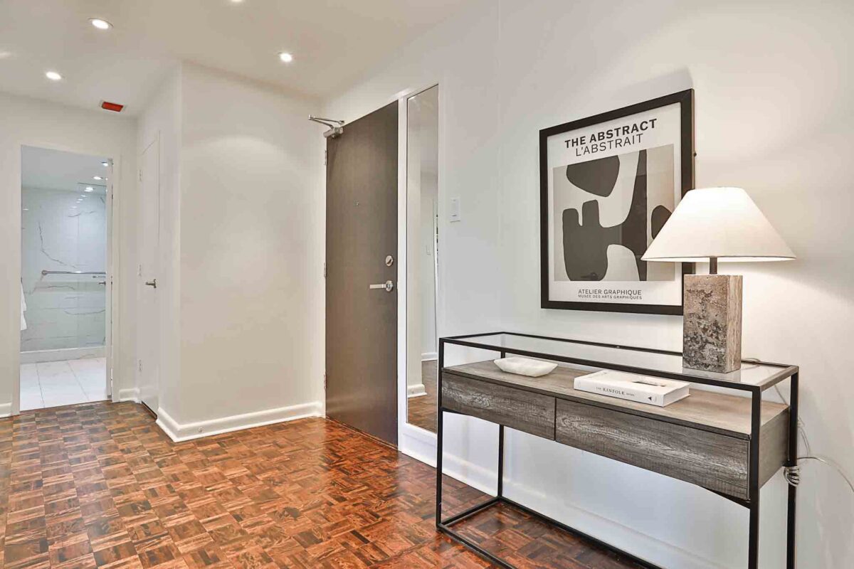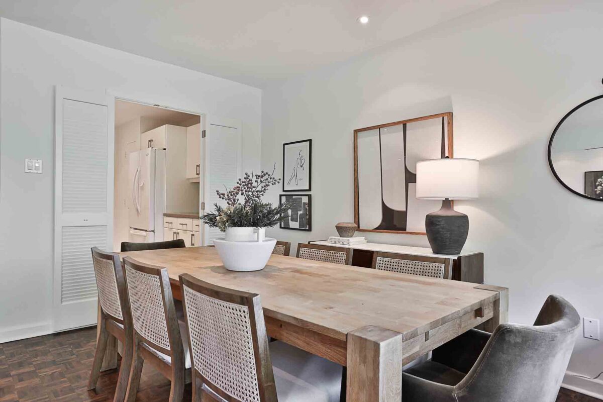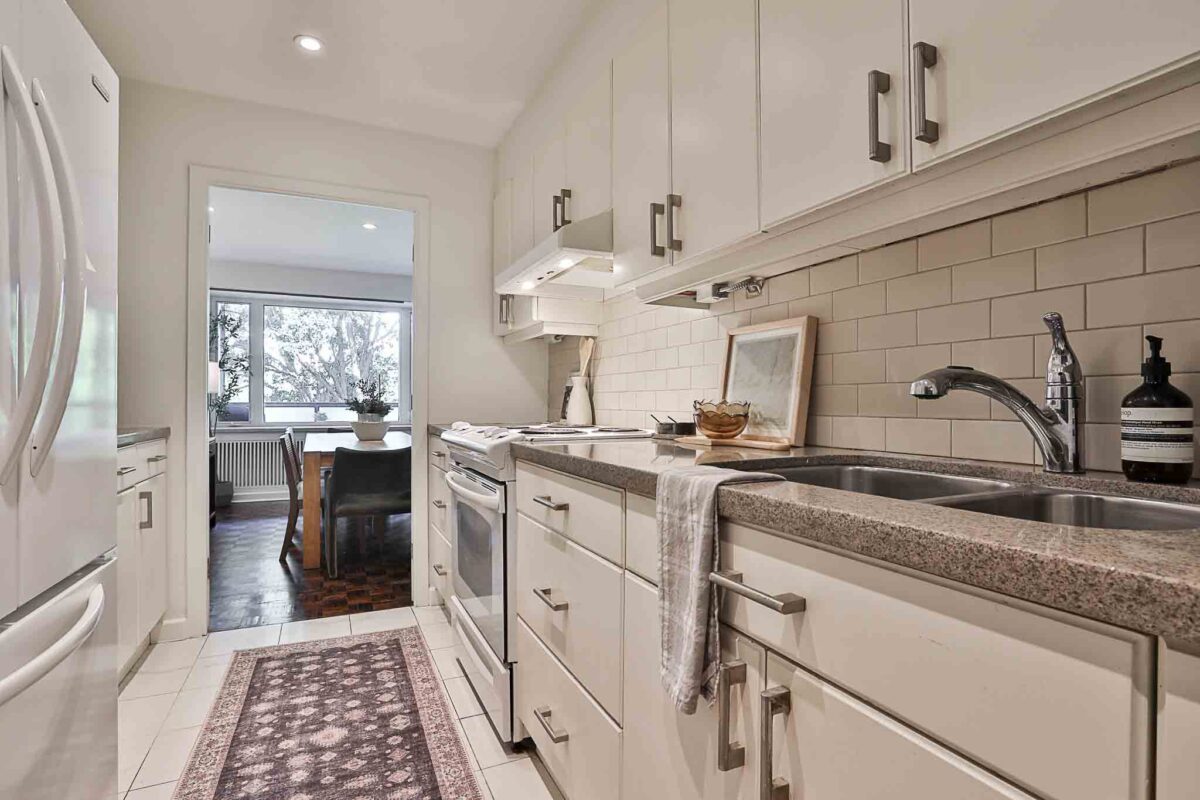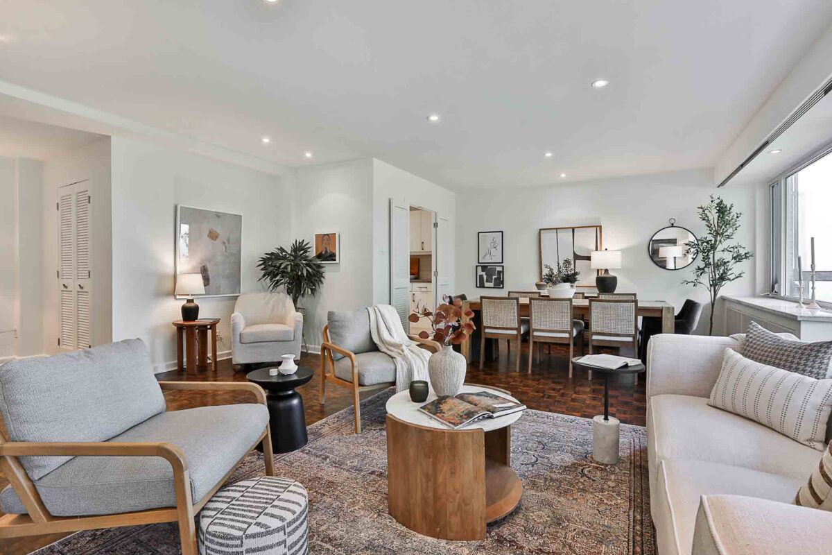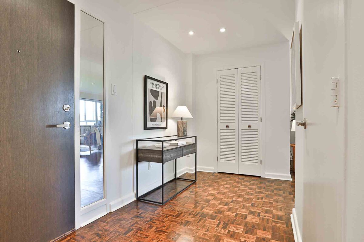 Welcome to Suite 709 at Arbour Glen – set within a quiet, well-established Rosedale residence, this spacious suite offers thoughtful design, comfort, and leafy treetop views. A welcoming foyer introduces the home, complete with a coat closet, an oversized walk-in closet that cleverly doubles as pantry storage, and a discreet two-piece bathroom for guests. From here, the suite opens into expansive living and dining rooms, where the original parquet flooring and oversized windows create a warm and inviting backdrop for daily life.