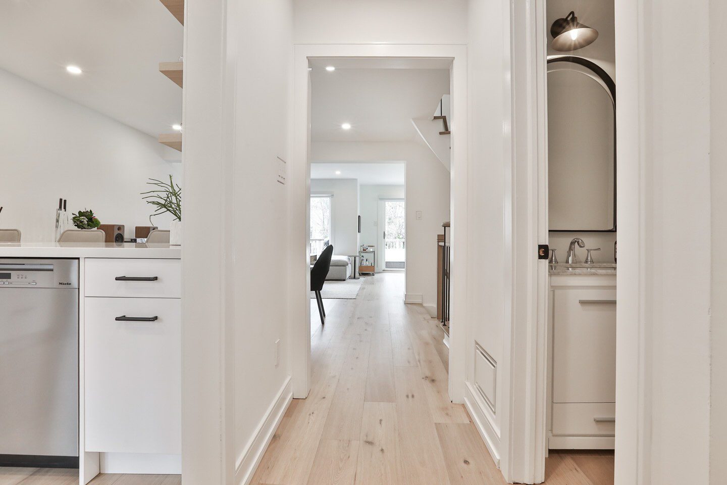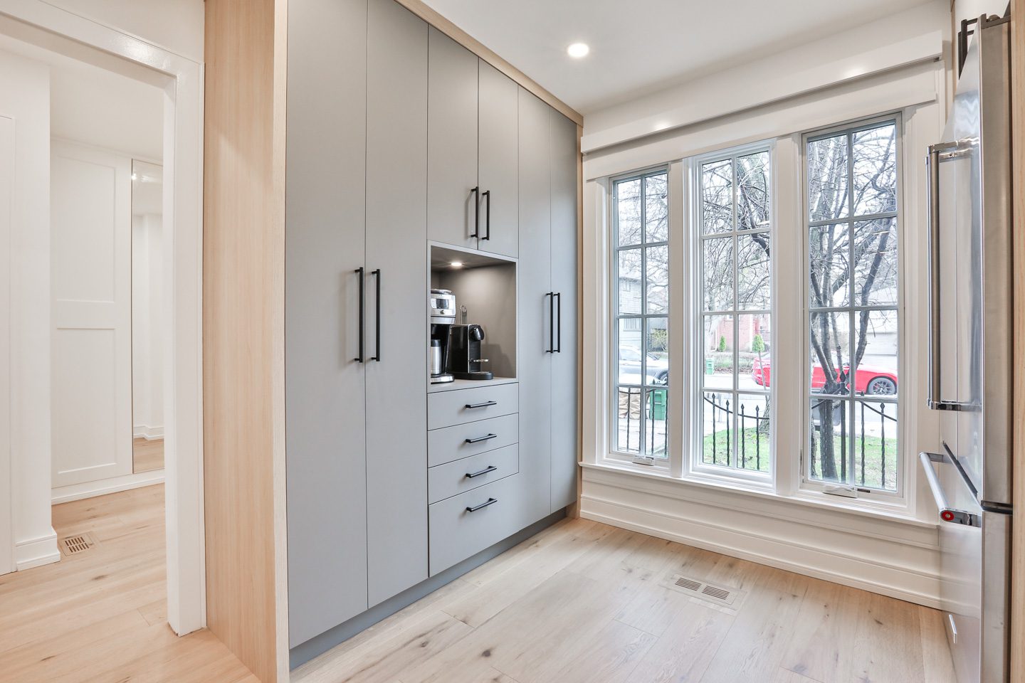 This home’s interiors offer a contrast to the more traditional brick exterior, with crisp transitional interiors and an incredible amount of interior space to comfortably enjoy. There are two entrances to the home, one at Avenue Road and one at the rear via the extra wide paved driveway that comes in off of Glengrove Avenue West. At whatever position you arrive at this freehold townhouse, the interiors award you with a surprisingly large and renovated experience.