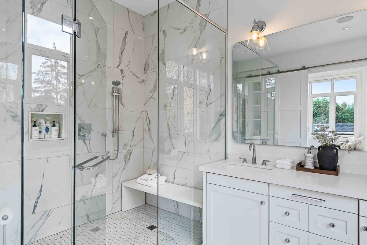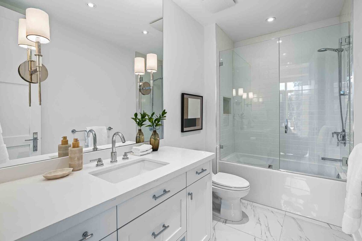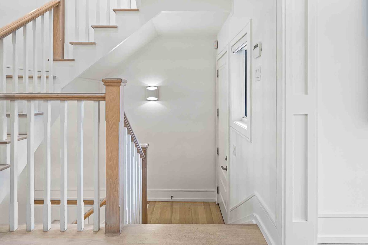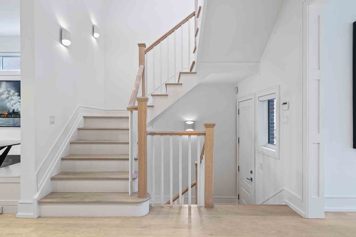 The home is serviced by a very rare private driveway with parking for up to two cars. A side room entrance from the private driveway connects quickly to the mud room that lies at the base of the stairs, with built-in cubbies for all family members. The recreation room expands to the full width of the home, allowing for multiple zones of entertainment and with a direct walk-out to the garden. An in-law or guest suite is set at the front of the basement and has access to a beautifully appointed four-piece bathroom with a custom oak wall feature and a large steam shower. The laundry room holds full-sized machines, a stainless steel soaking sink and built-in cabinets for extra storage. Storage opportunities continue in the two huge closets on this floor, as well as the two cavities underneath the staircase. Outside the walk-out from the basement is a massive storage room underneath the covered porch above, serving as a concealed storage room for outdoor furniture, landscaping items, winter tires and seasonal items.