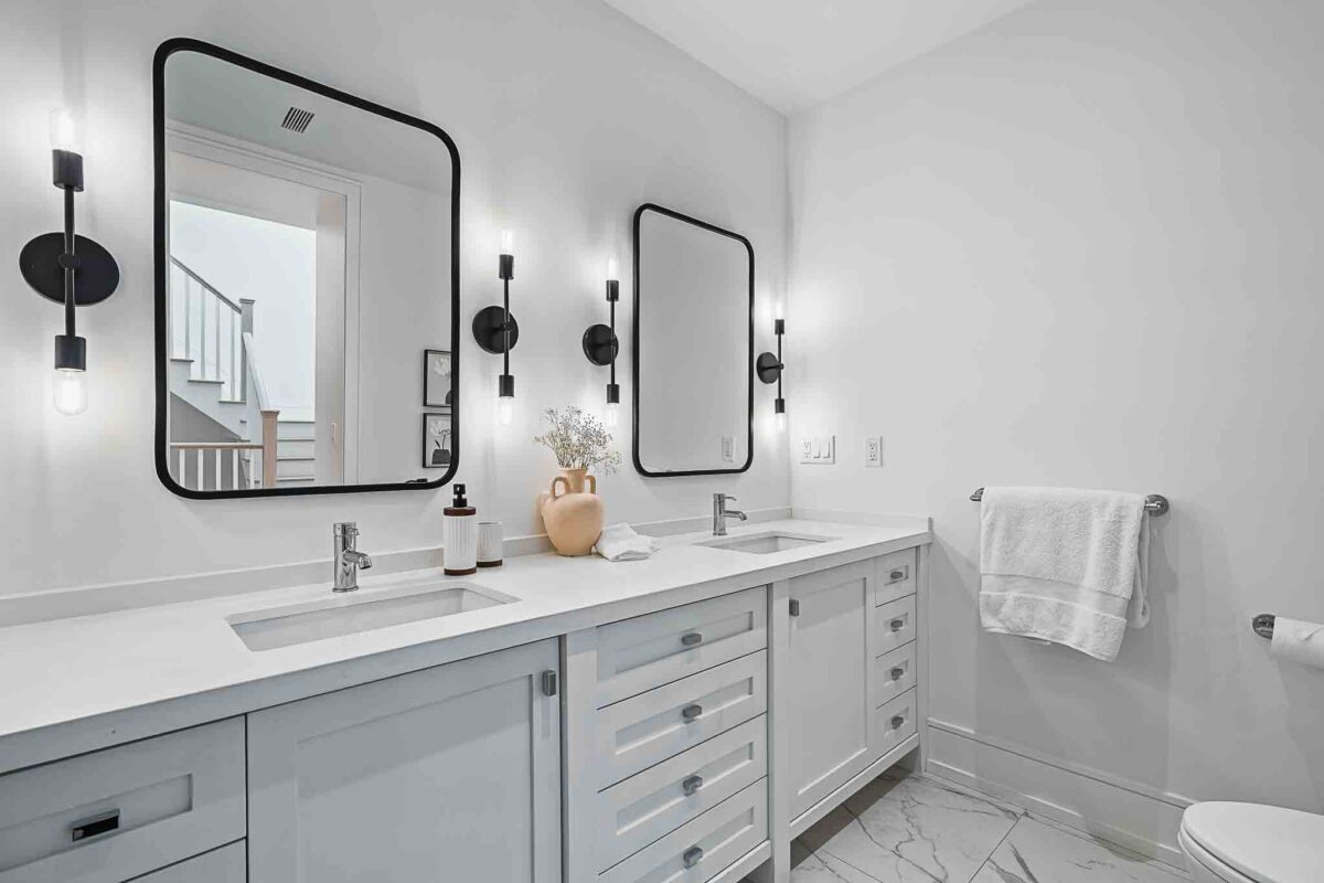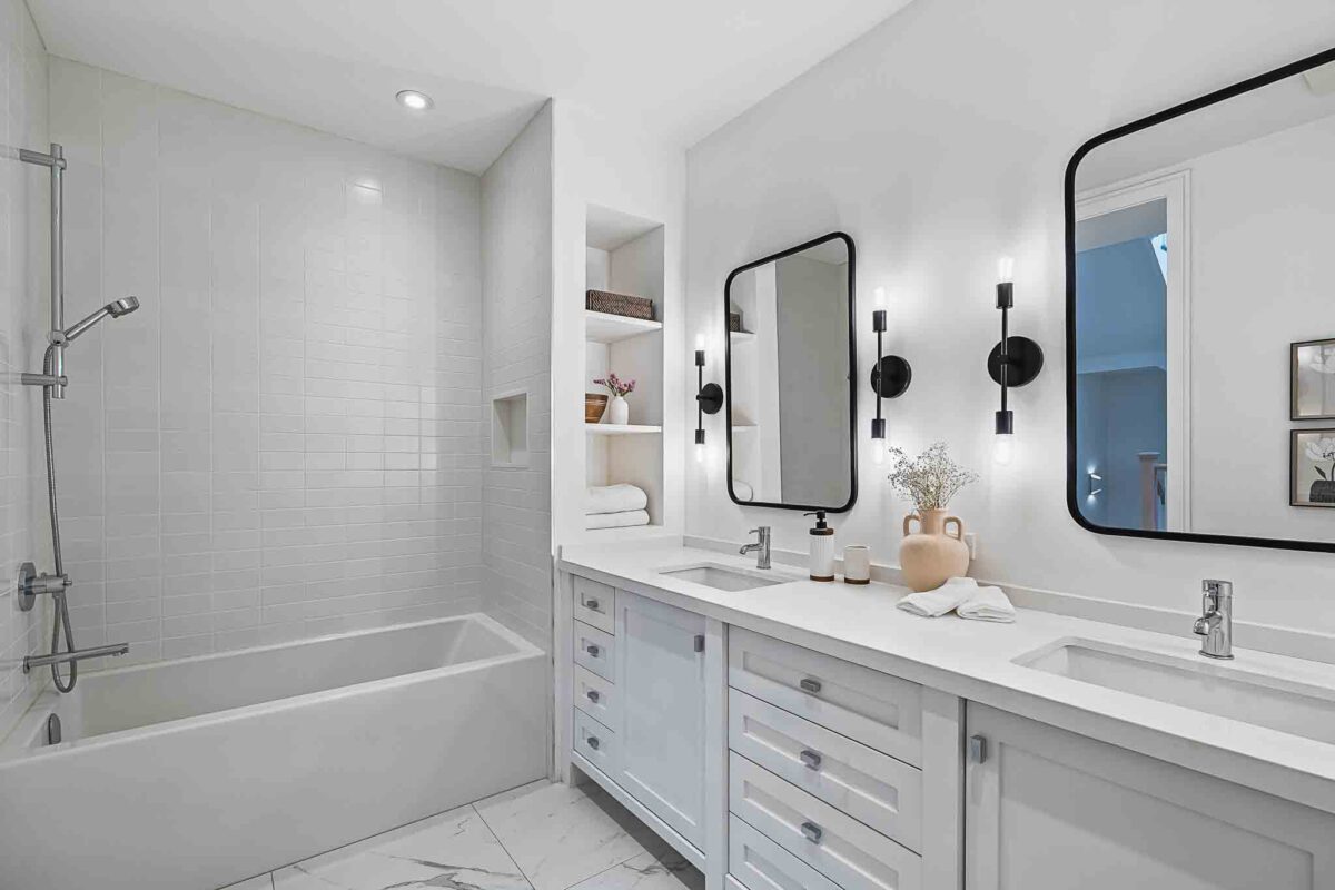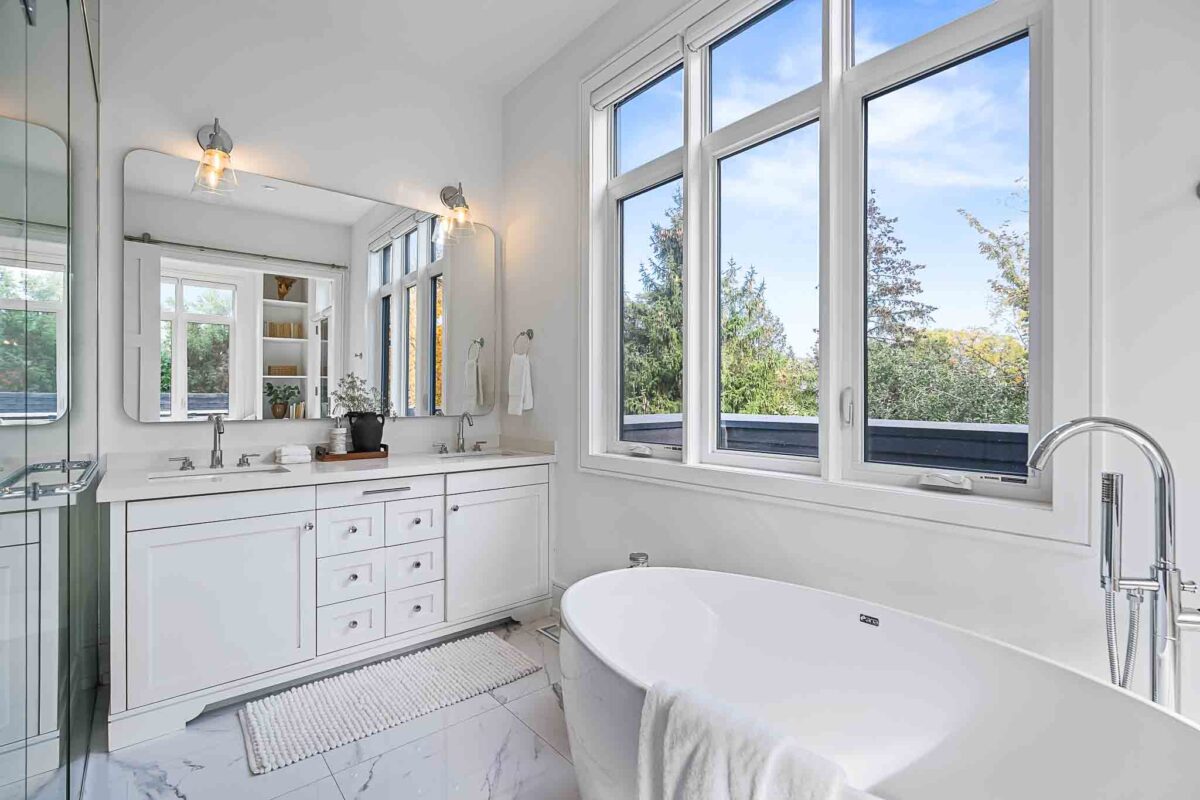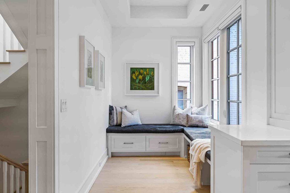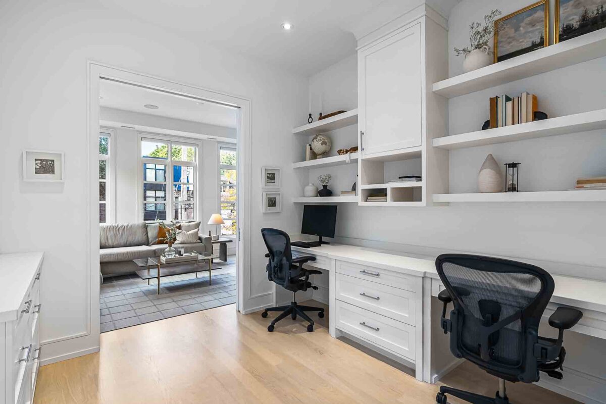 The footprint and design of the second floor were so thoughtfully planned. It holds three huge bedrooms, a built-in home office, and two large renovated bathrooms. The front bedroom is currently used as a second-floor family room and holds a four-piece ensuite bathroom. Children can bond more easily with connecting bedrooms, and each is outfitted with large walk-in closets. The second-floor office or homework area provides for two workstations, and a tandem window bench is framed under windows that face both south and west.