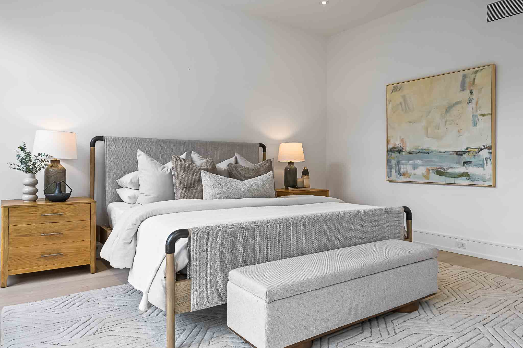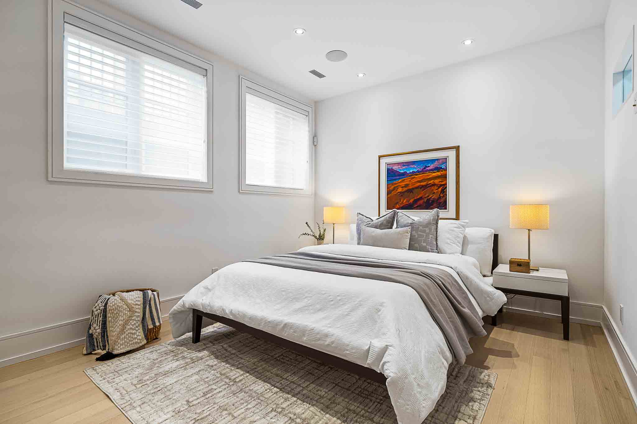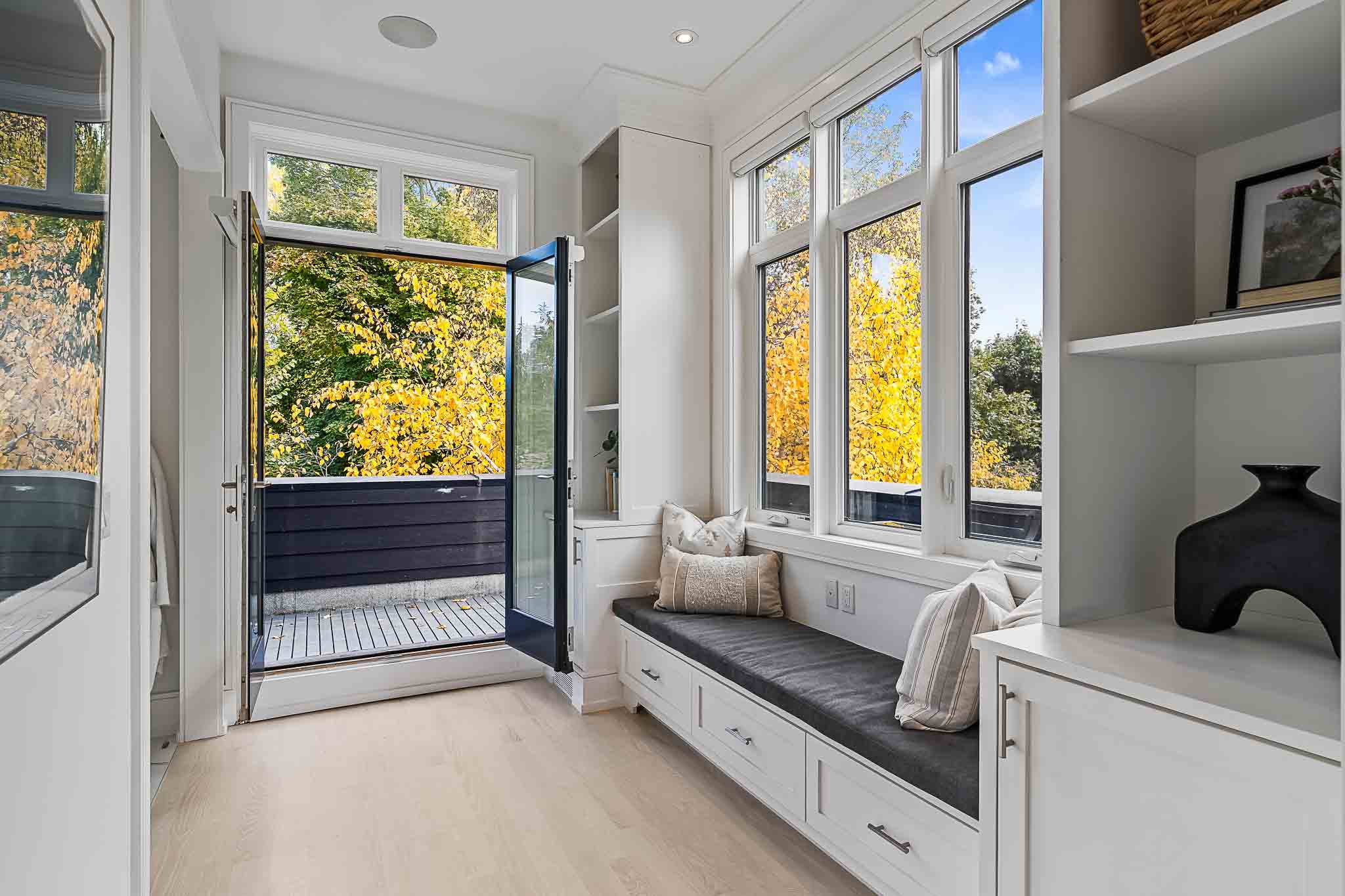 The footprint and design of the second floor were so thoughtfully planned. It holds three huge bedrooms, a built-in home office, and two large renovated bathrooms. The front bedroom is currently used as a second-floor family room and holds a four-piece ensuite bathroom. Children can bond more easily with connecting bedrooms, and each is outfitted with large walk-in closets. The second-floor office or homework area provides for two workstations, and a tandem window bench is framed under windows that face both south and west.