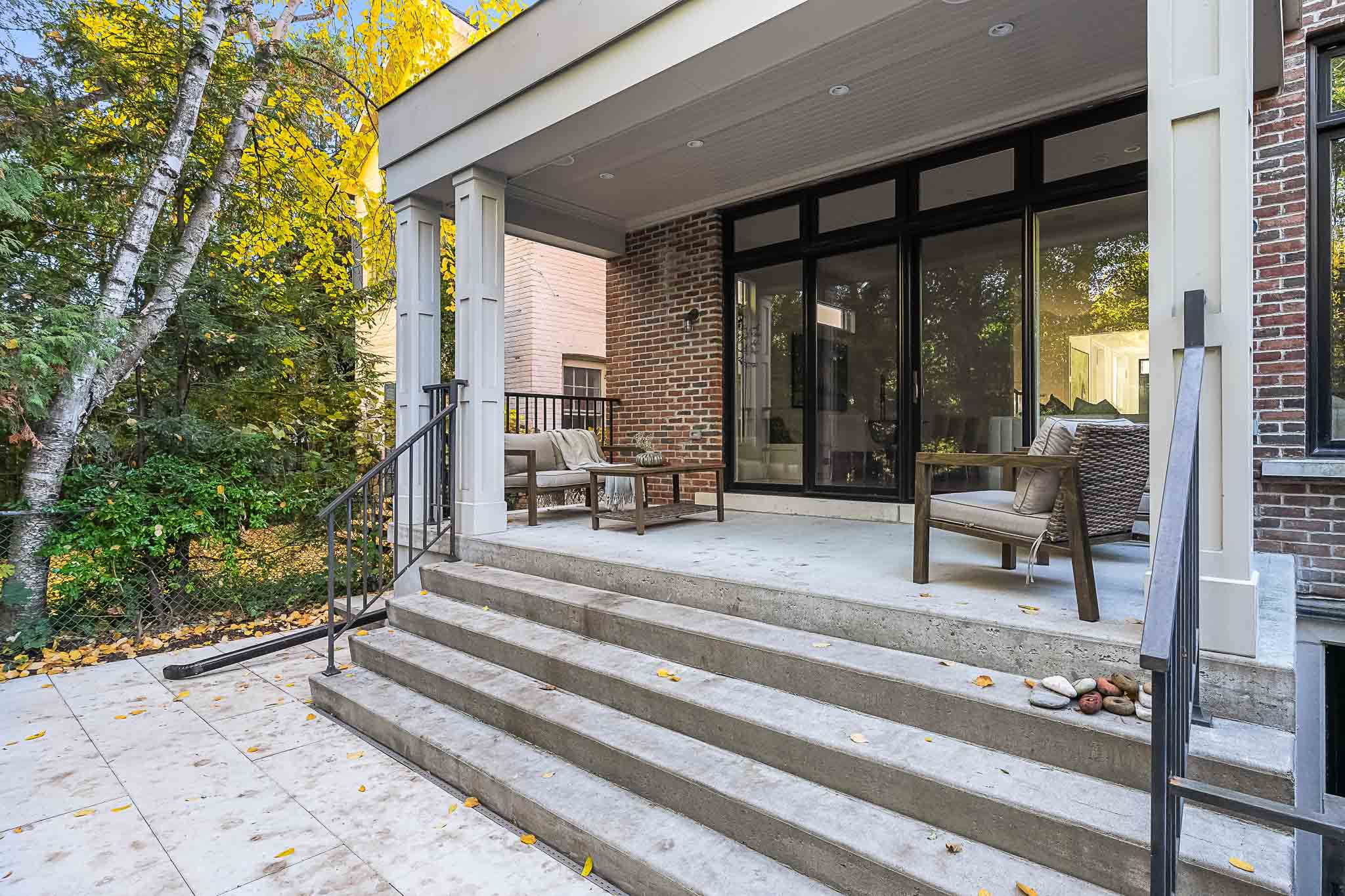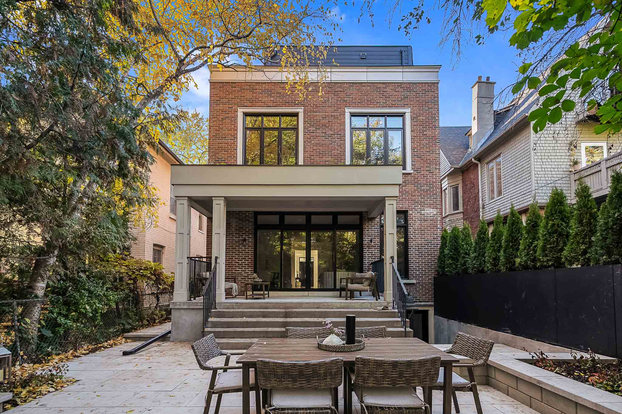 The vast expanse of this property cannot be fully realized until standing in the backyard. The 178-foot lot depth has allowed for the size and scale of this home to be as remarkable as it is, yet there is so much land yet to be enjoyed beyond it. Two stone terraces are set for stunning entertaining spaces, and are lined on their periphery with newly landscaped and no-maintenance perennial garden beds. The grassy area beyond the terraces is vast and can be used in so many different formats by the next owner. At the rear of the lot, an old “barn” still stands as a footprint for a future garden suite, with city approvals required.