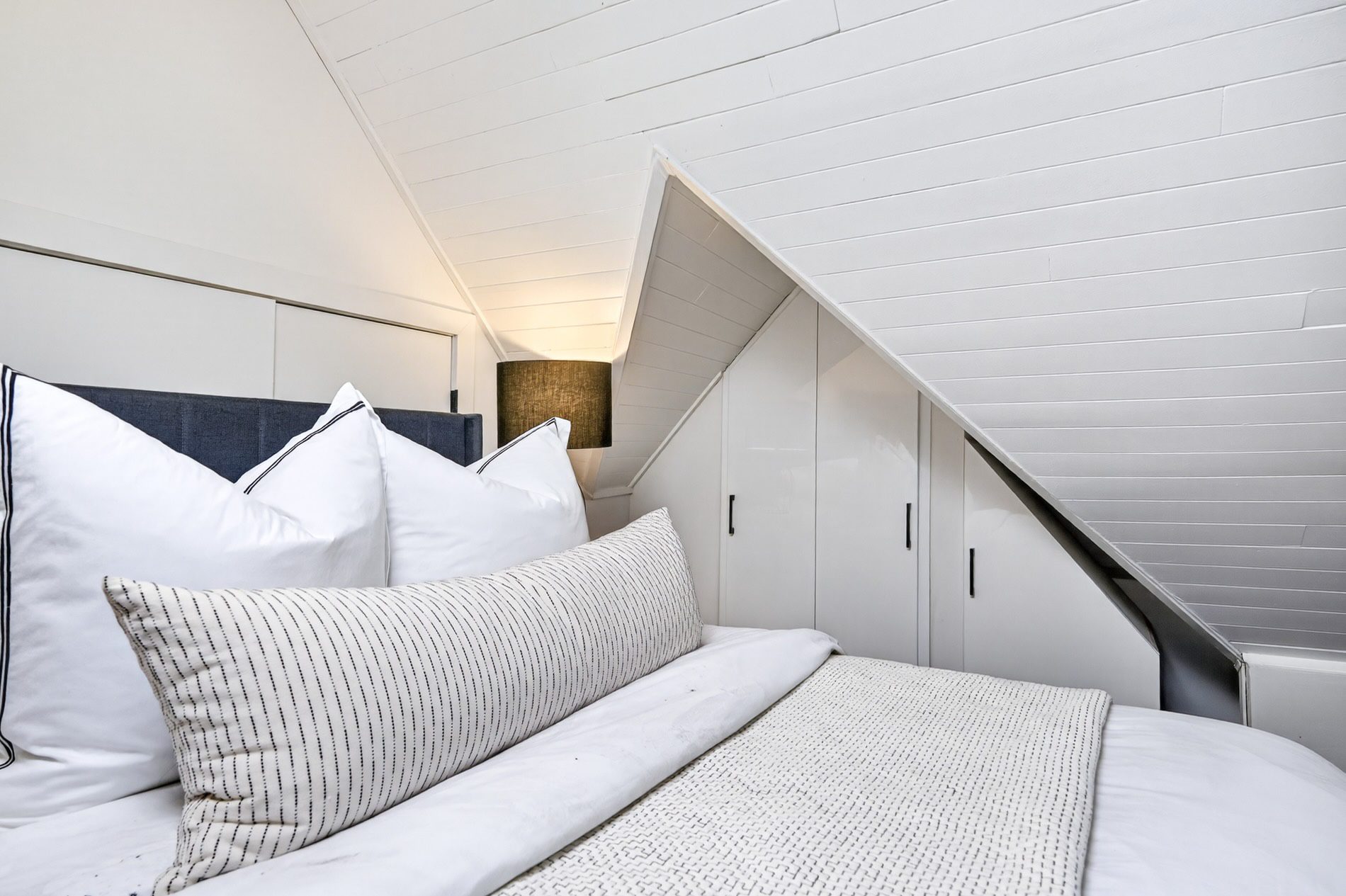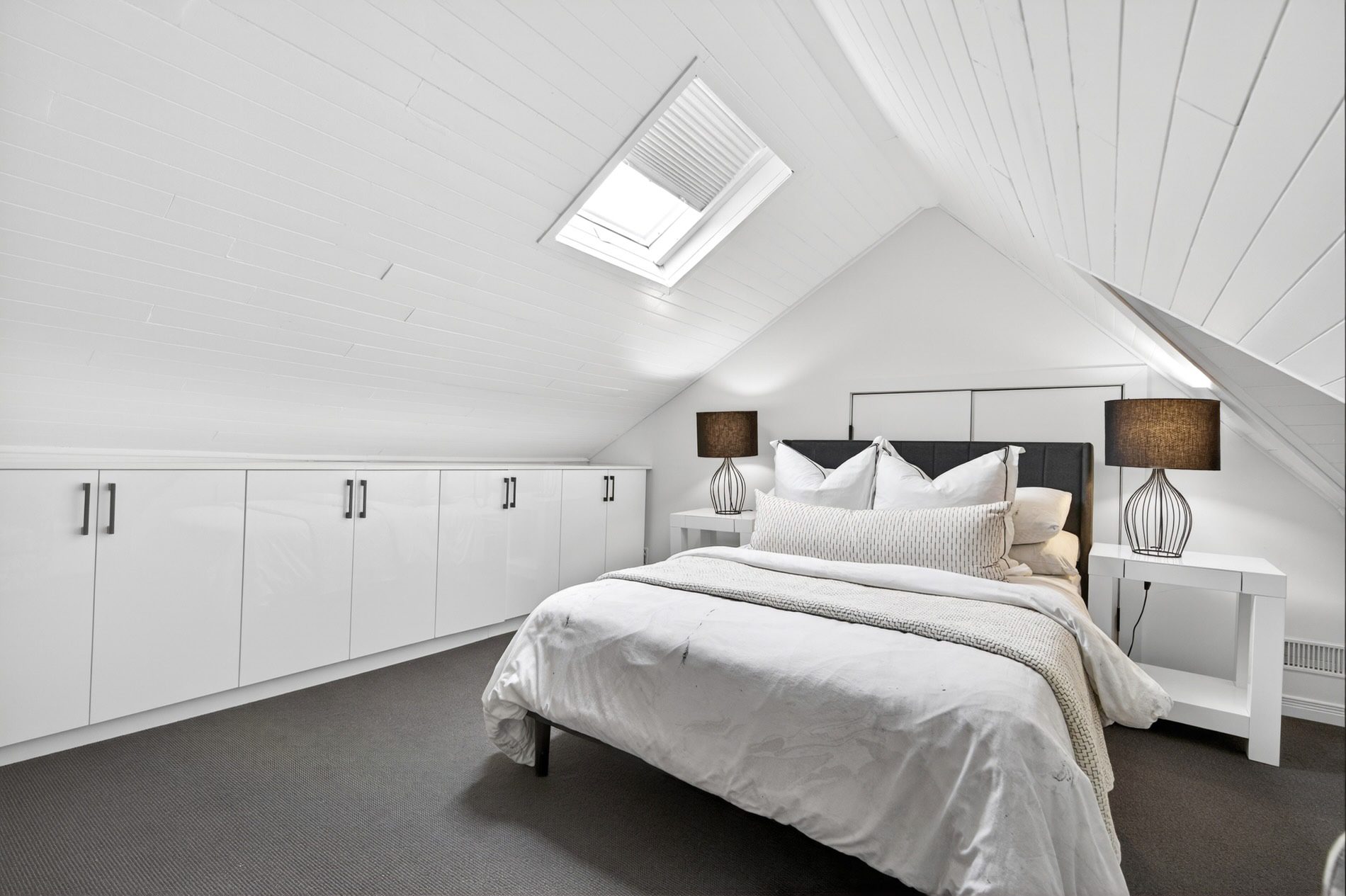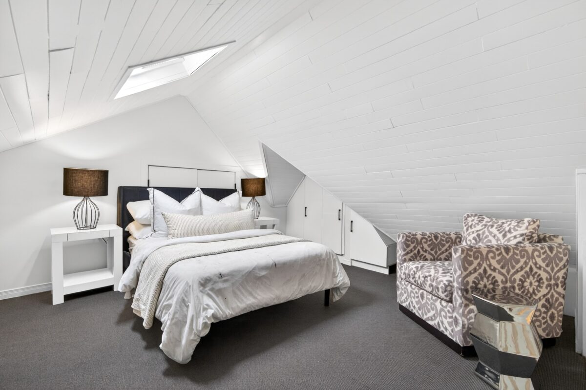 The third bedroom is set on the third floor as a separate retreat and is built into the roofline with storage closets and drawers that have been recessed into the roofline. This floor as well as the second floor are serviced by a second furnace and air conditioning unit, balancing the temperatures individually from the lower levels.