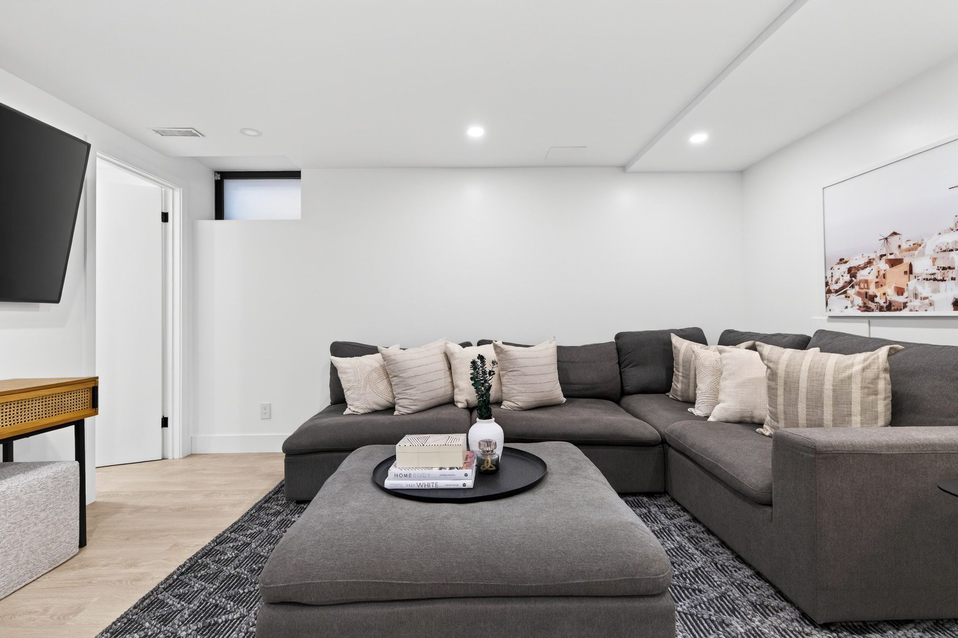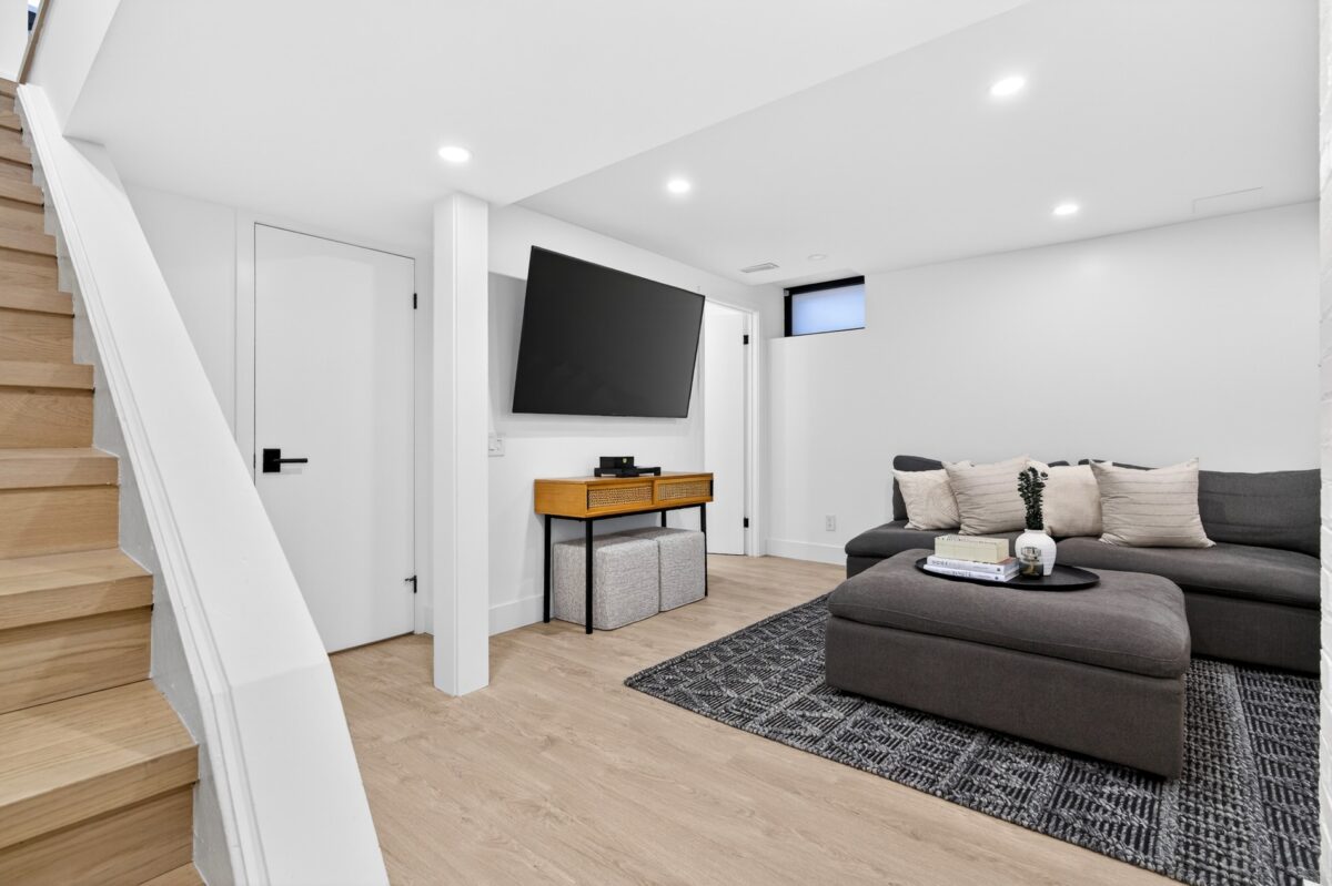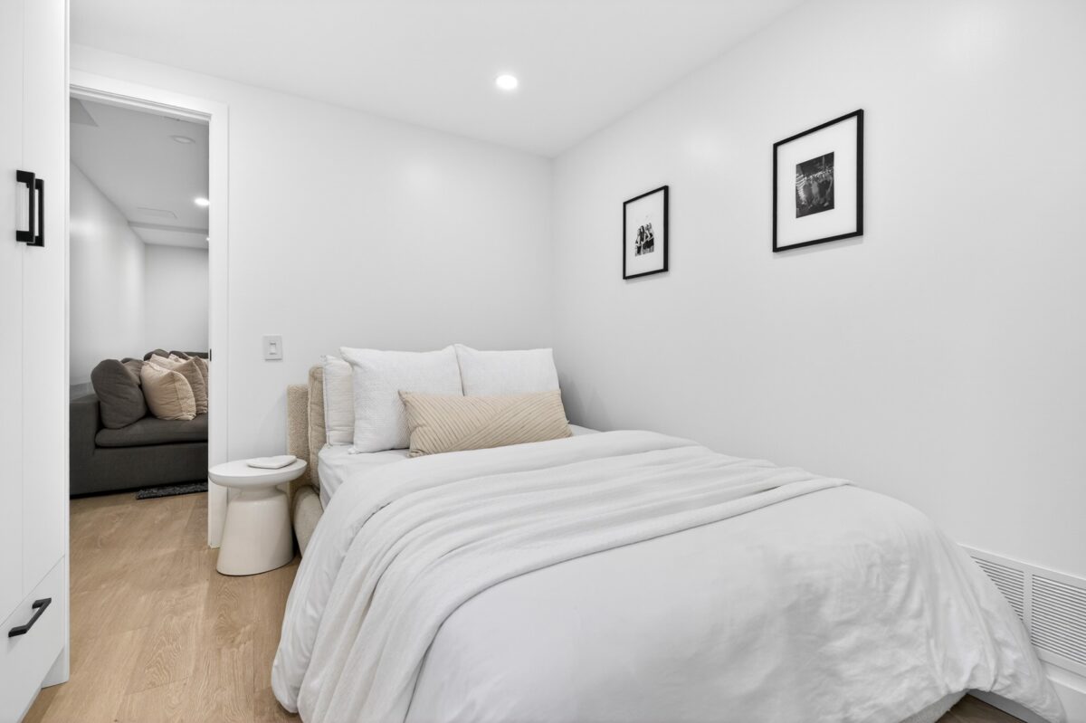Over seven foot ceilings in the basement immediately make for a more enjoyable and versatile use of space. The recreation room easily invites movie marathons, and a fourth bedroom with a three-piece ensuite has been added as a guest or nanny suite. There are multiple storage closets, walk-in or built-in, on this level, and a shared laundry/utility room has an above-grade window.
