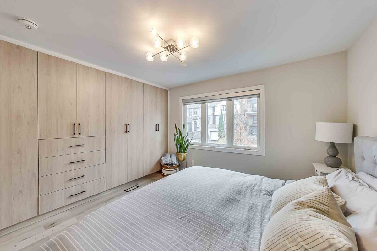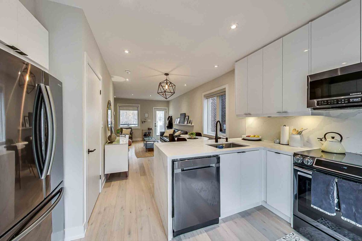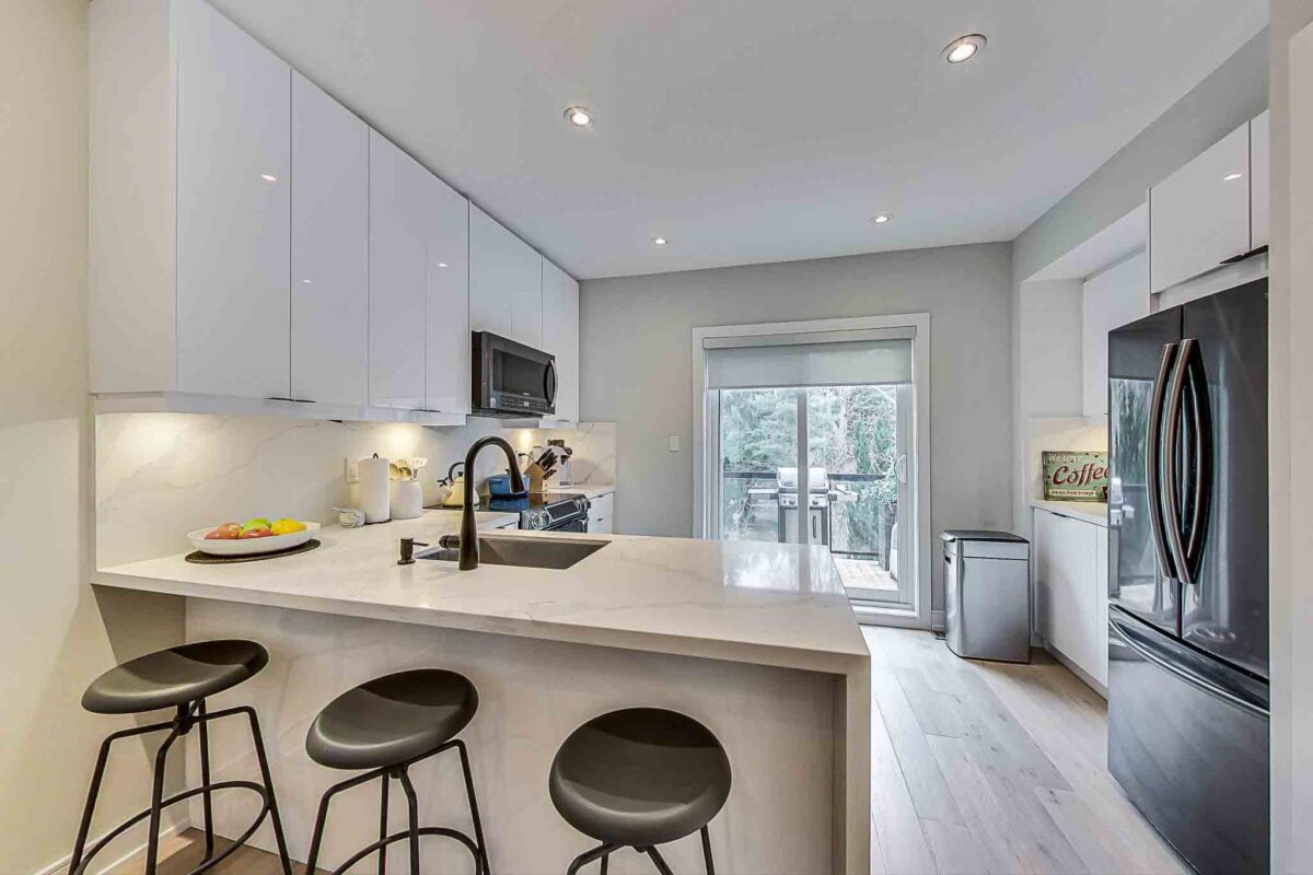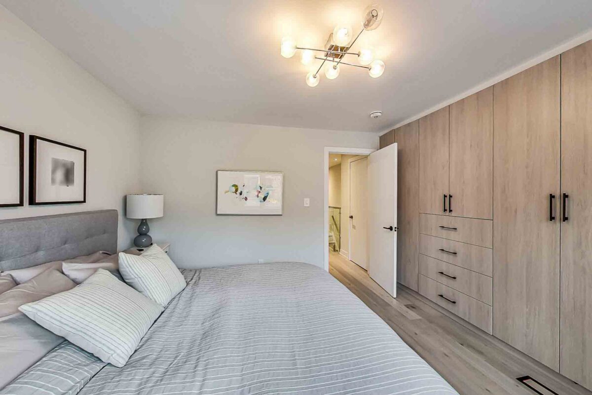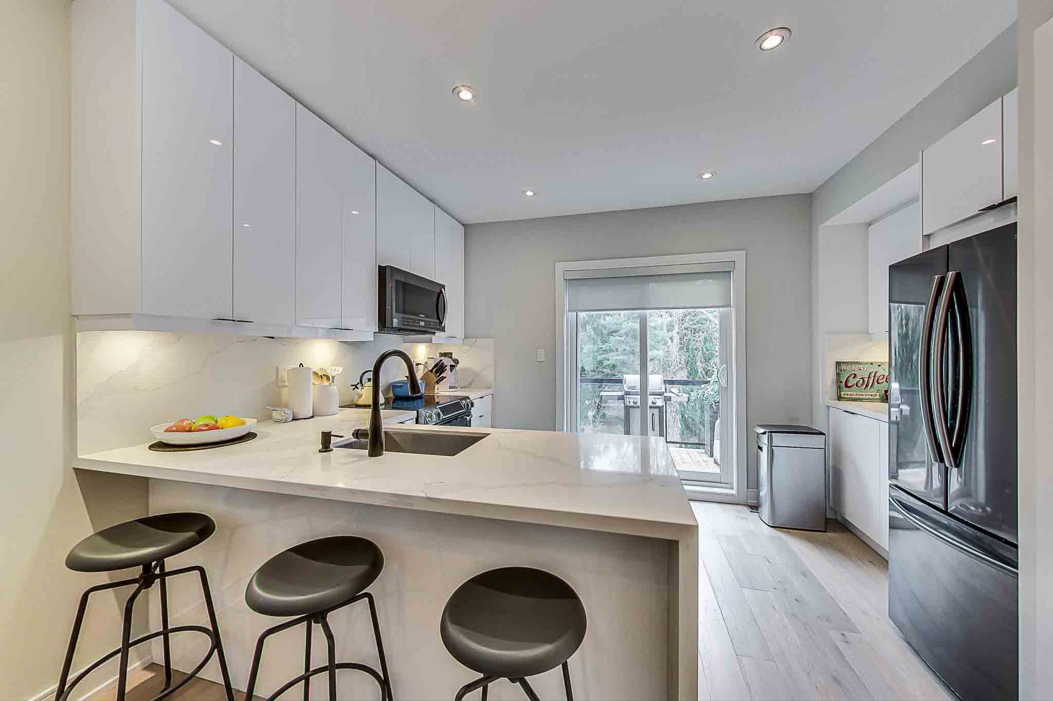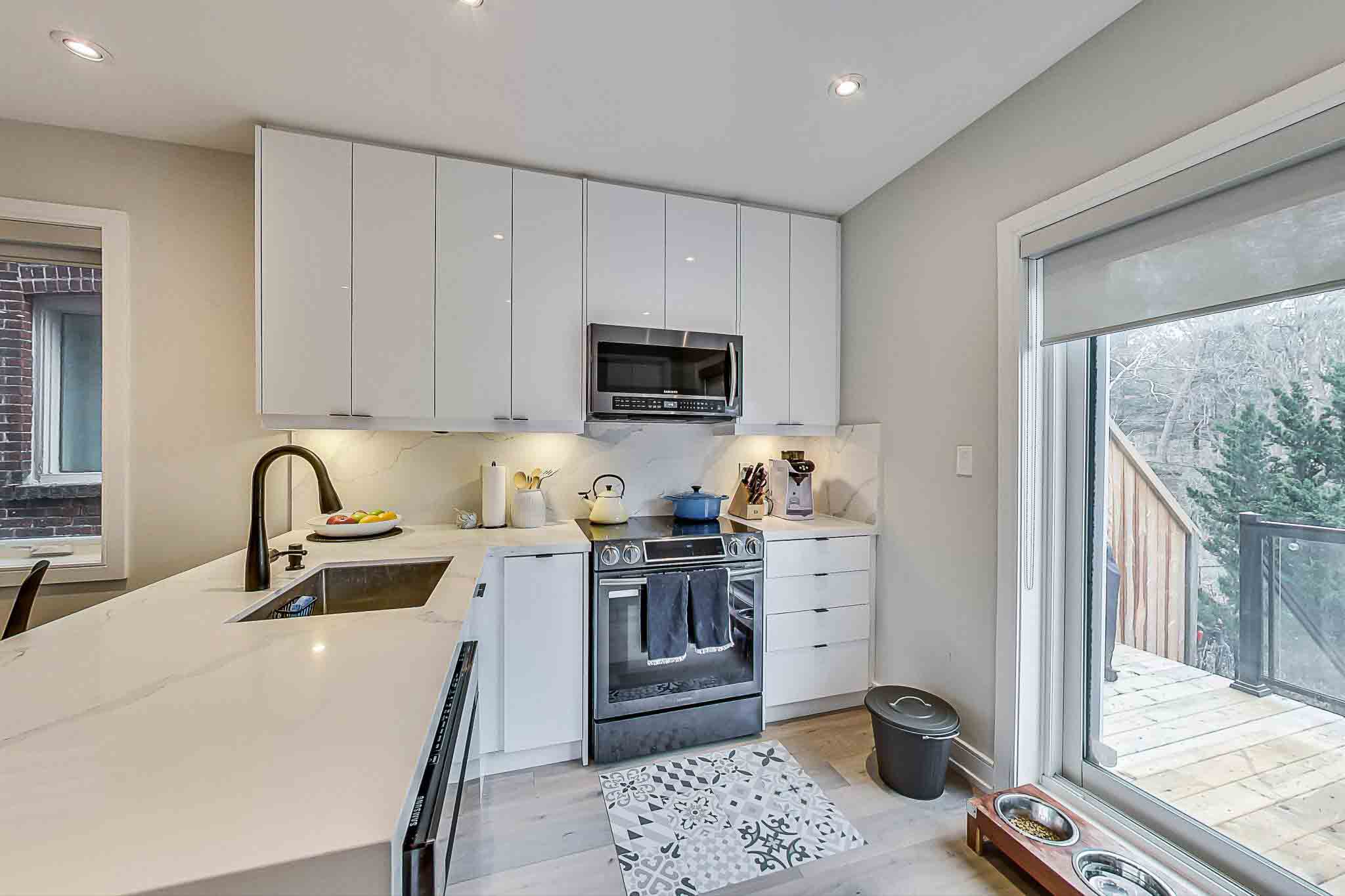 Set on a quiet cul-de-sac in a family-friendly neighbourhood, this renovated semi-detached home is ready for long-term tenants. The main floor boasts an open-concept layout with hardwood floors and pot lights throughout. At the rear, a renovated kitchen offers a breakfast bar overlooking the dining room and is equipped with sleek appliances. A sliding door leads to the deck and expansive rear garden, which offers direct access to Sherwood Park. Upstairs, there are three bedrooms and a renovated three-piece bathroom. The finished lower level offers a large recreation room with extra space for a home office or study area. A three-piece renovated bathroom, along with the ensuite laundry services, is on this level. Located in a friendly community, this home is within walking distance of local shops and restaurants, schools and walking trails through Sherwood Park.