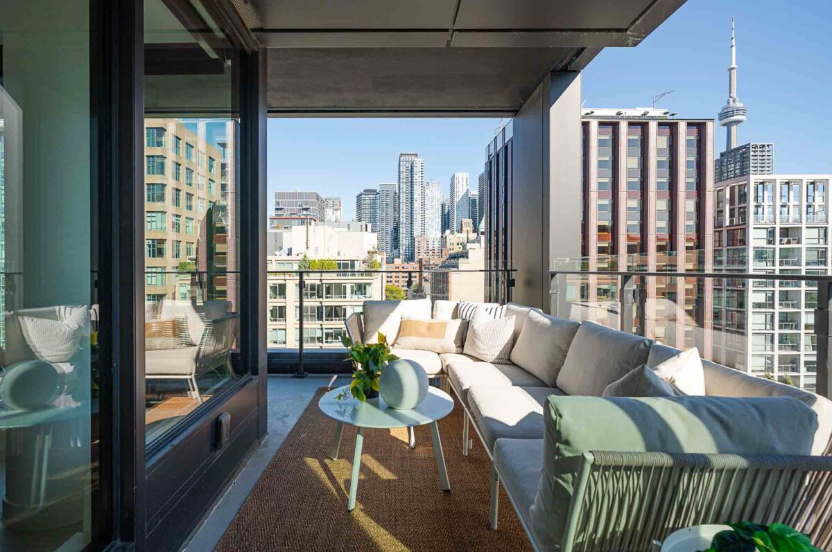 Beyond the interiors, a wrap-around terrace of more than 200 square feet offers an outdoor sanctuary suspended above the park, with a tranquil green canopy by day and the distant shimmer of the CN Tower as night falls.