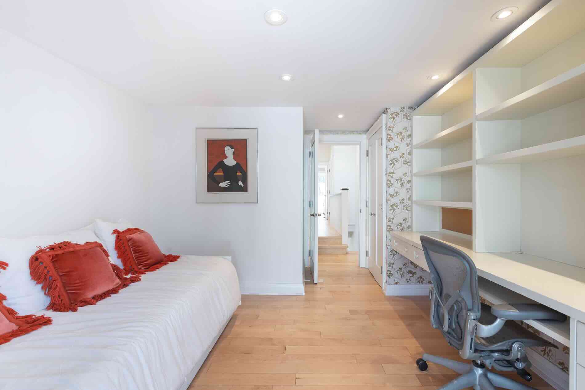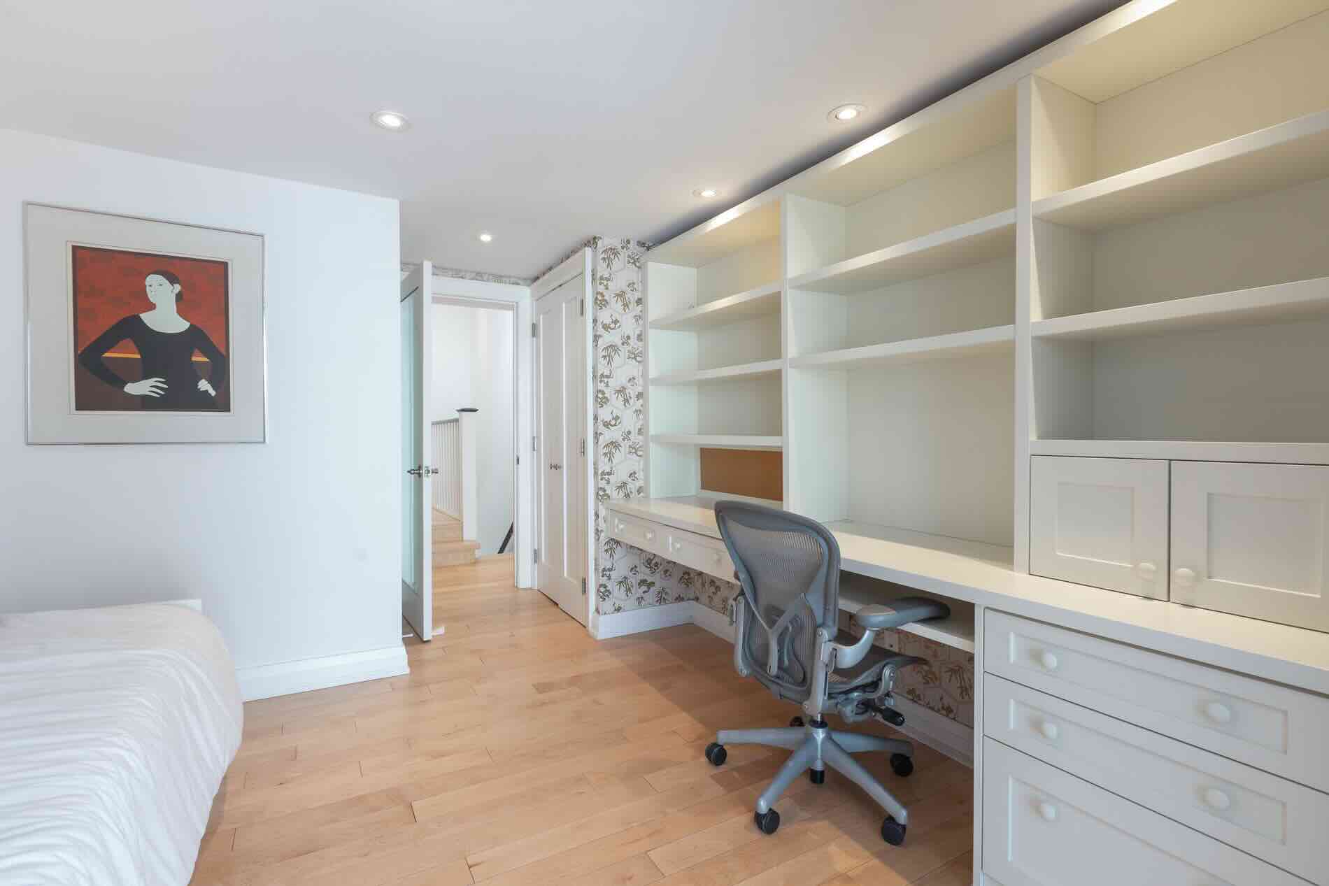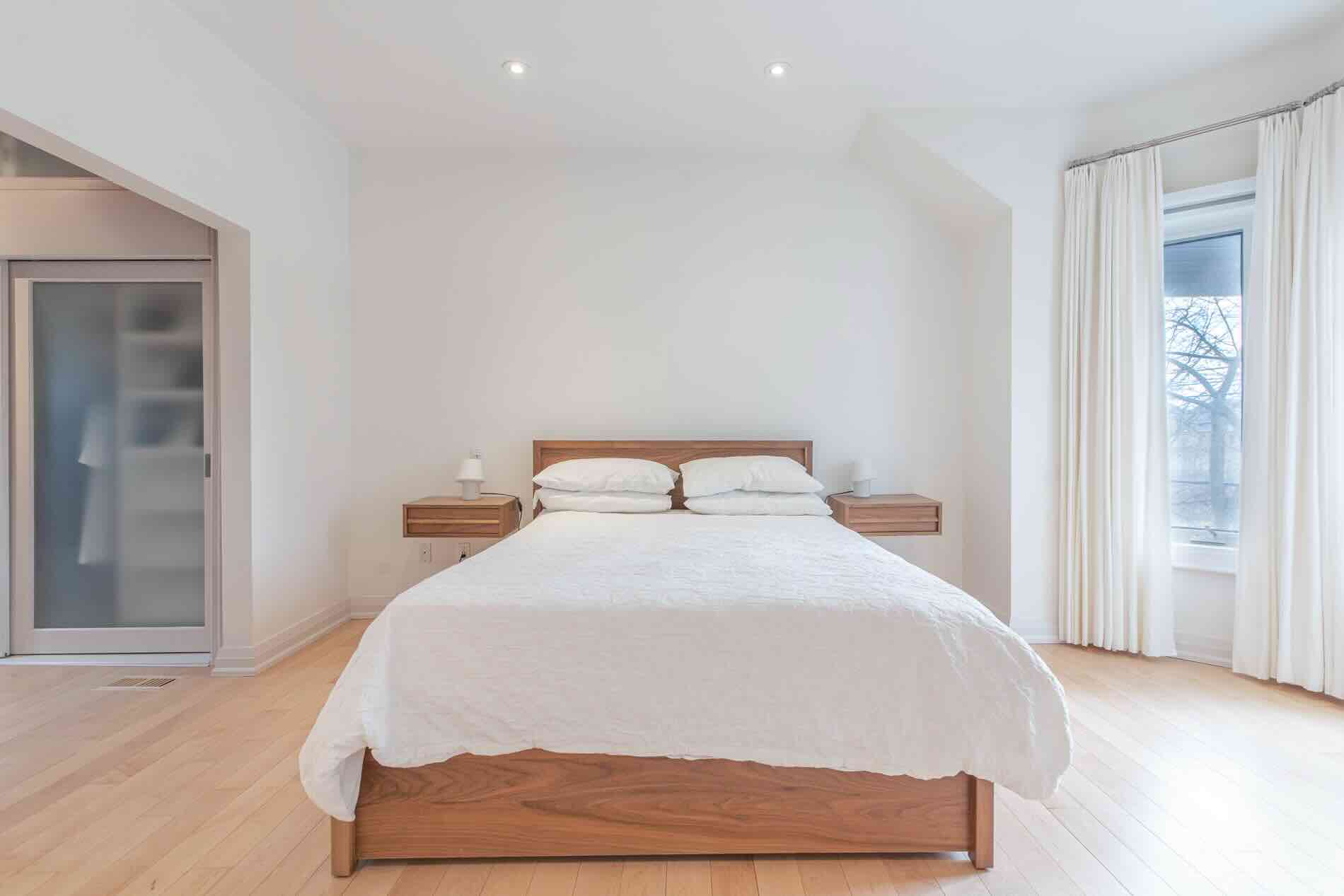 The second floor holds two outstanding bedrooms, both with access to renovated bathrooms and with customized storage or desks. The primary bedroom is king-sized with south views through the large bay window. It offers a walk-through closet with ample wardrobe storage, and a renovated four-piece ensuite bathroom.