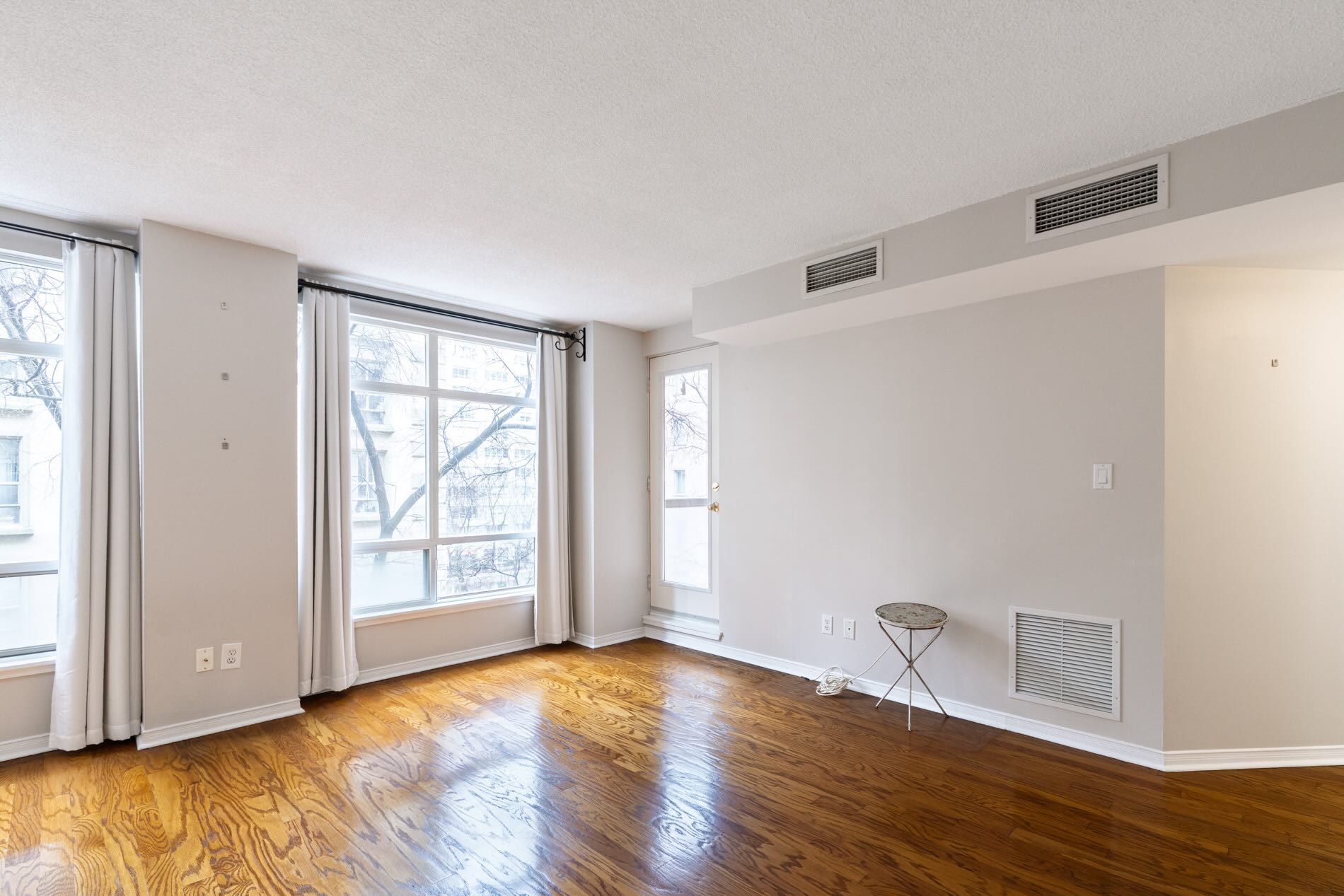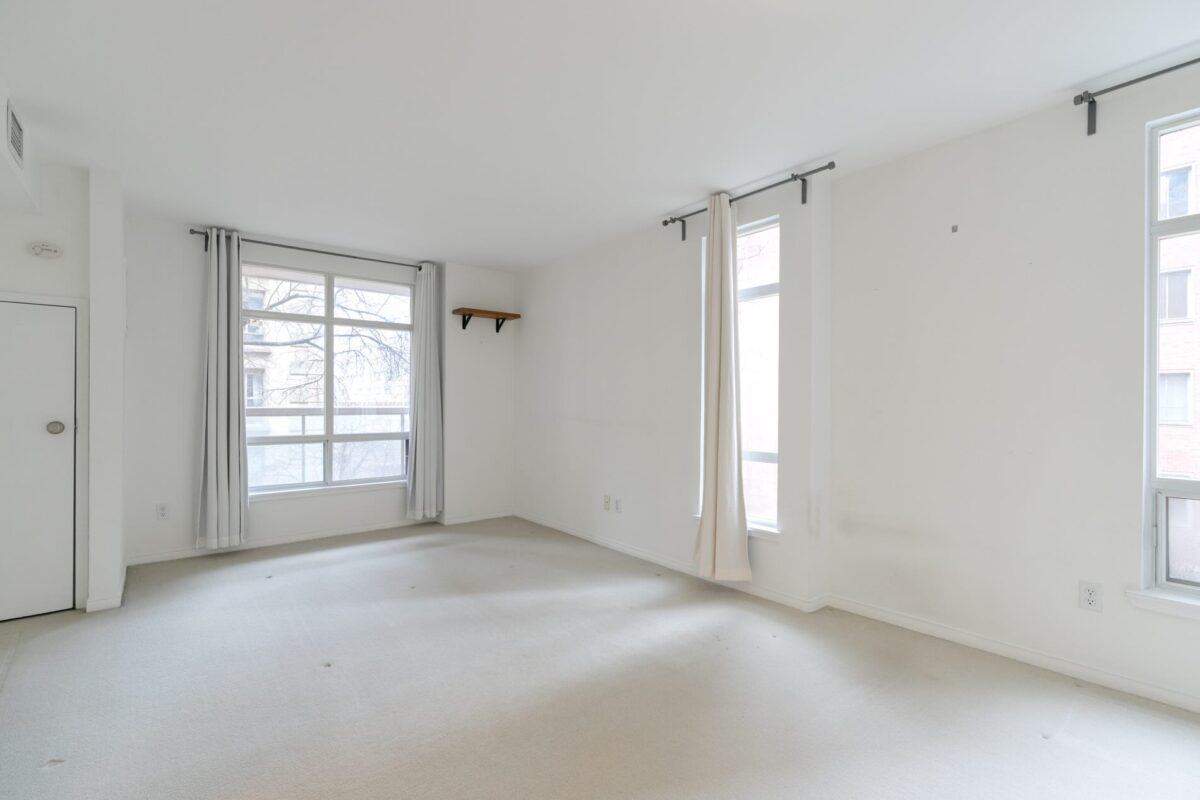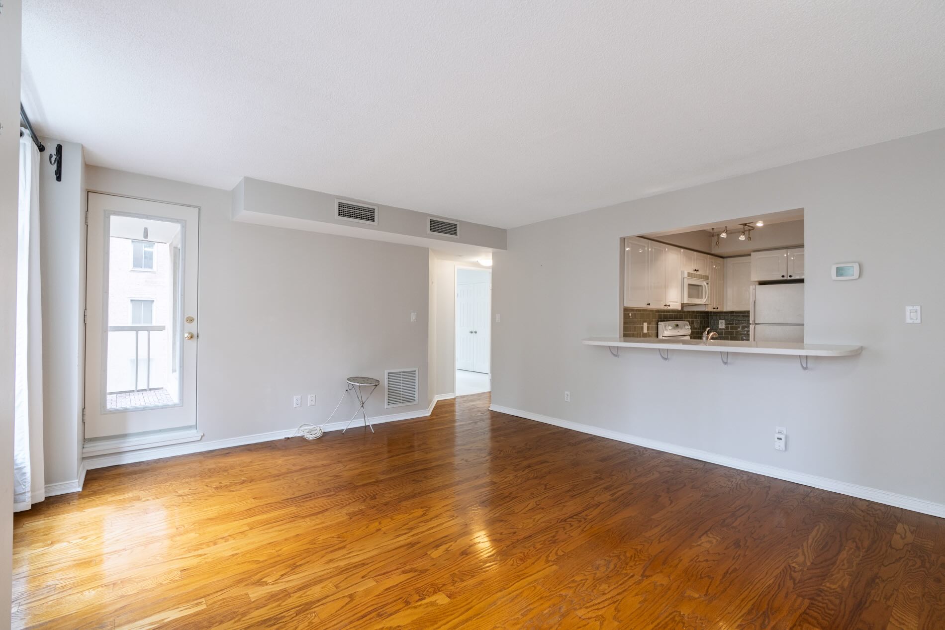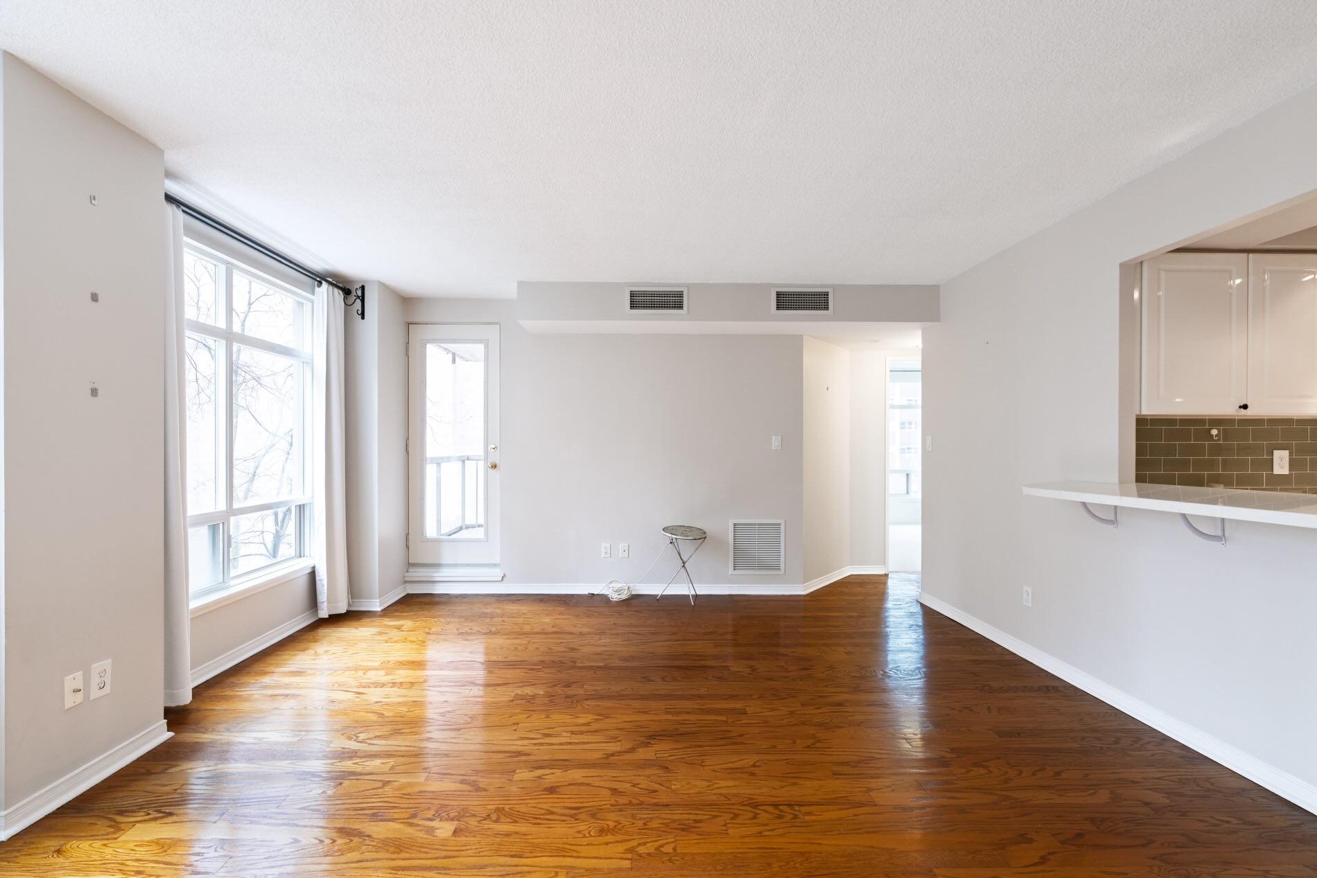 Outdoors space is also generous with a large south-facing balcony offering a quiet perch with tree-lined views. It is large enough for a small bistro set or lounging chairs, and accessed from both the living/dining room and the bedroom.