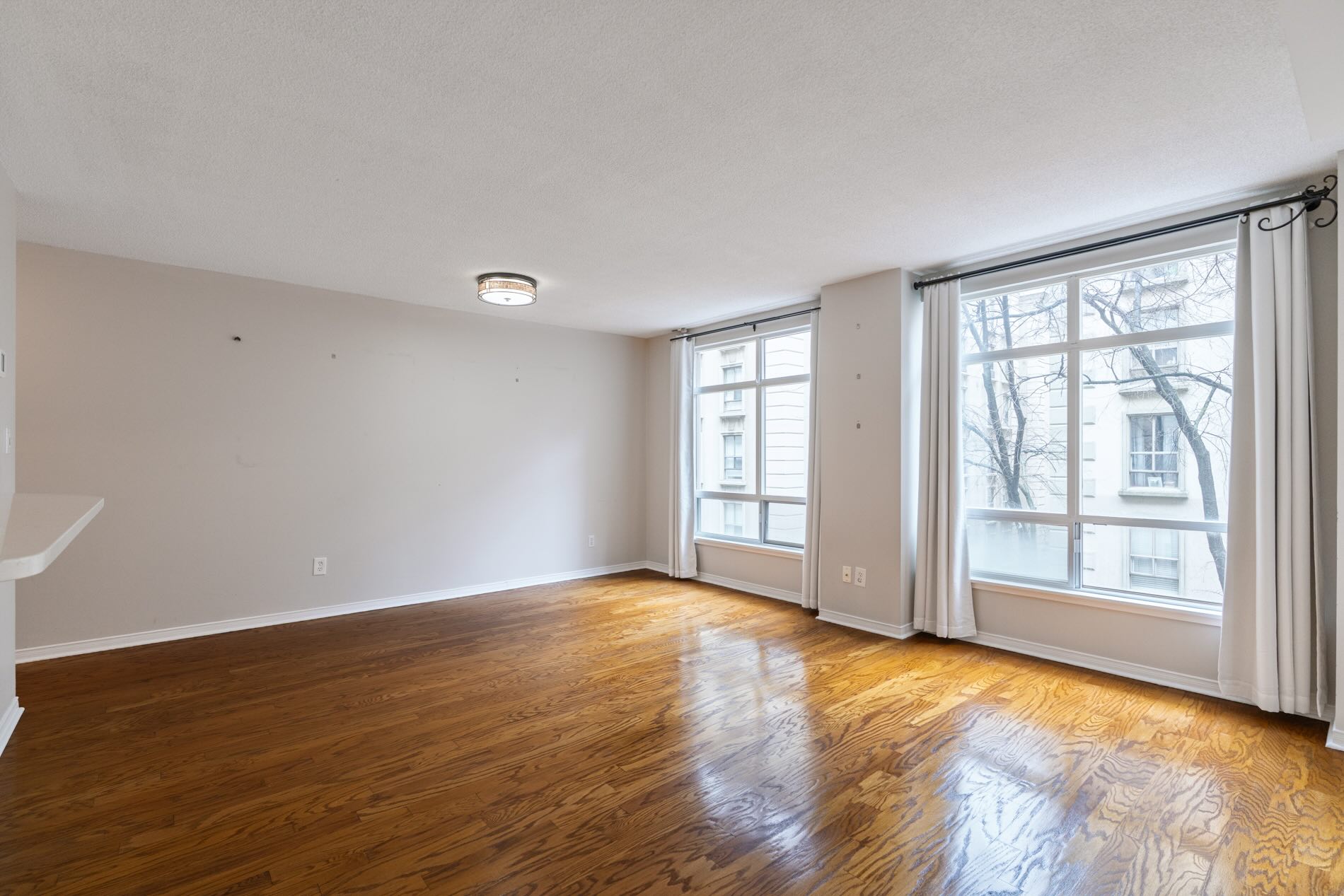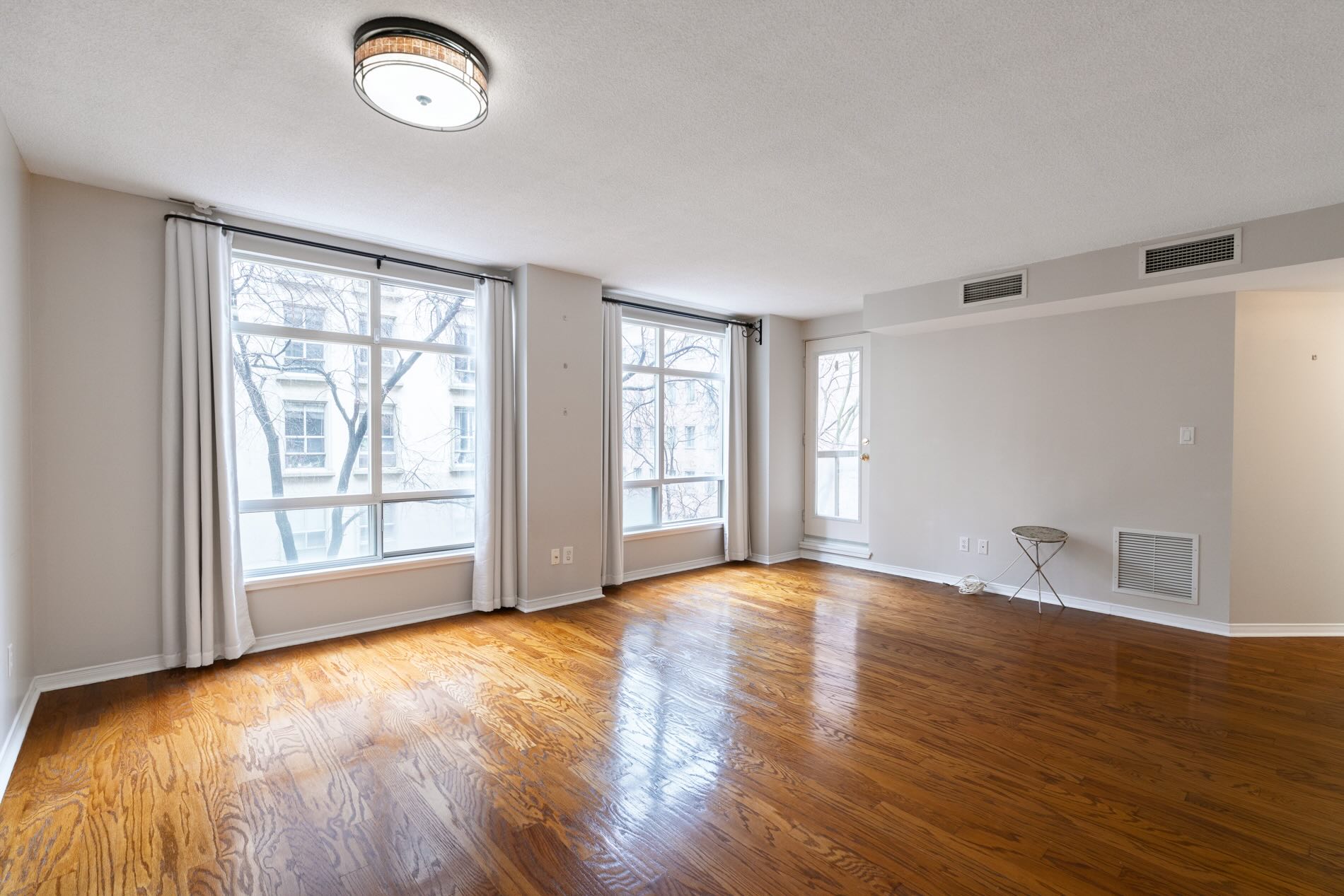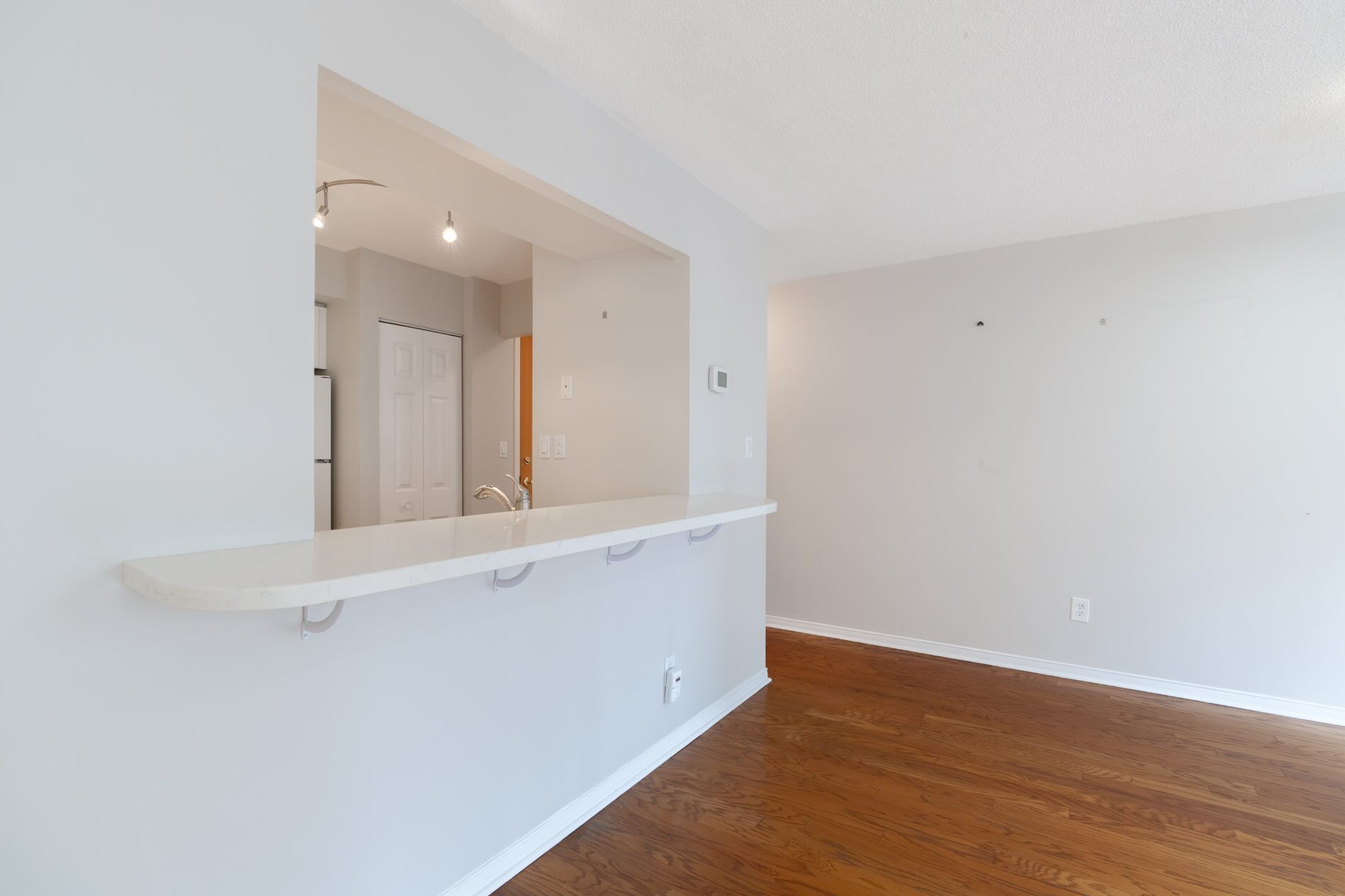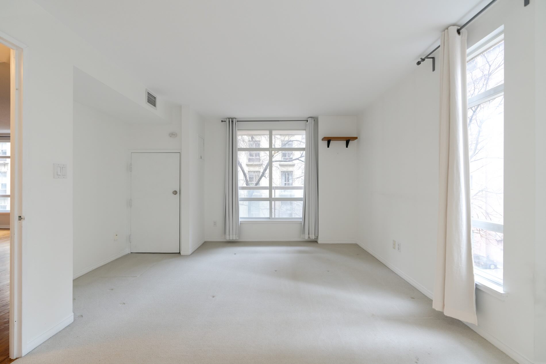 Outdoors space is also generous with a large south-facing balcony offering a quiet perch with tree-lined views. It is large enough for a small bistro set or lounging chairs, and accessed from both the living/dining room and the bedroom.