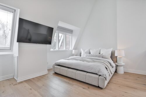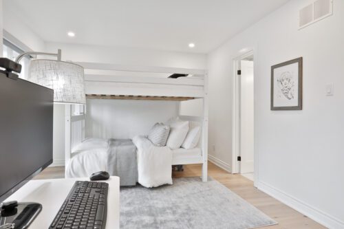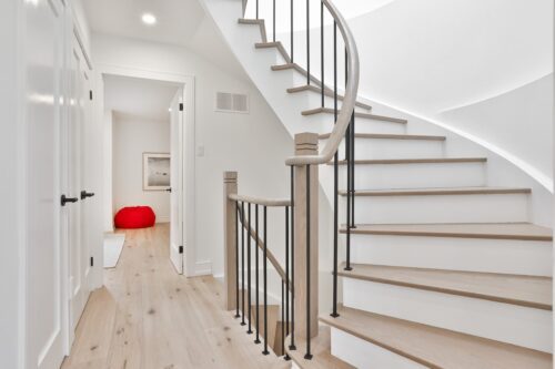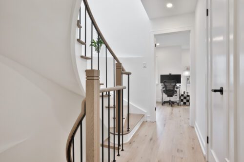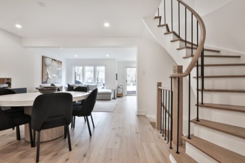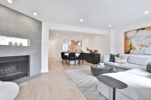 This home’s interiors offer a contrast to the more traditional brick exterior, with crisp transitional interiors and an incredible amount of interior space to comfortably enjoy. There are two entrances to the home, one at Avenue Road and one at the rear via the extra wide paved driveway that comes in off of Glengrove Avenue West. At whatever position you arrive at this freehold townhouse, the interiors award you with a surprisingly large and renovated experience.