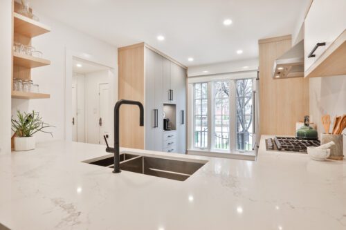 - Kitchen design, cabinets, countertops, appliances, hardware, plumbing fixtures, lighting