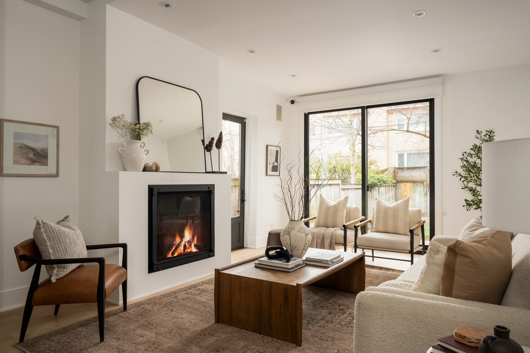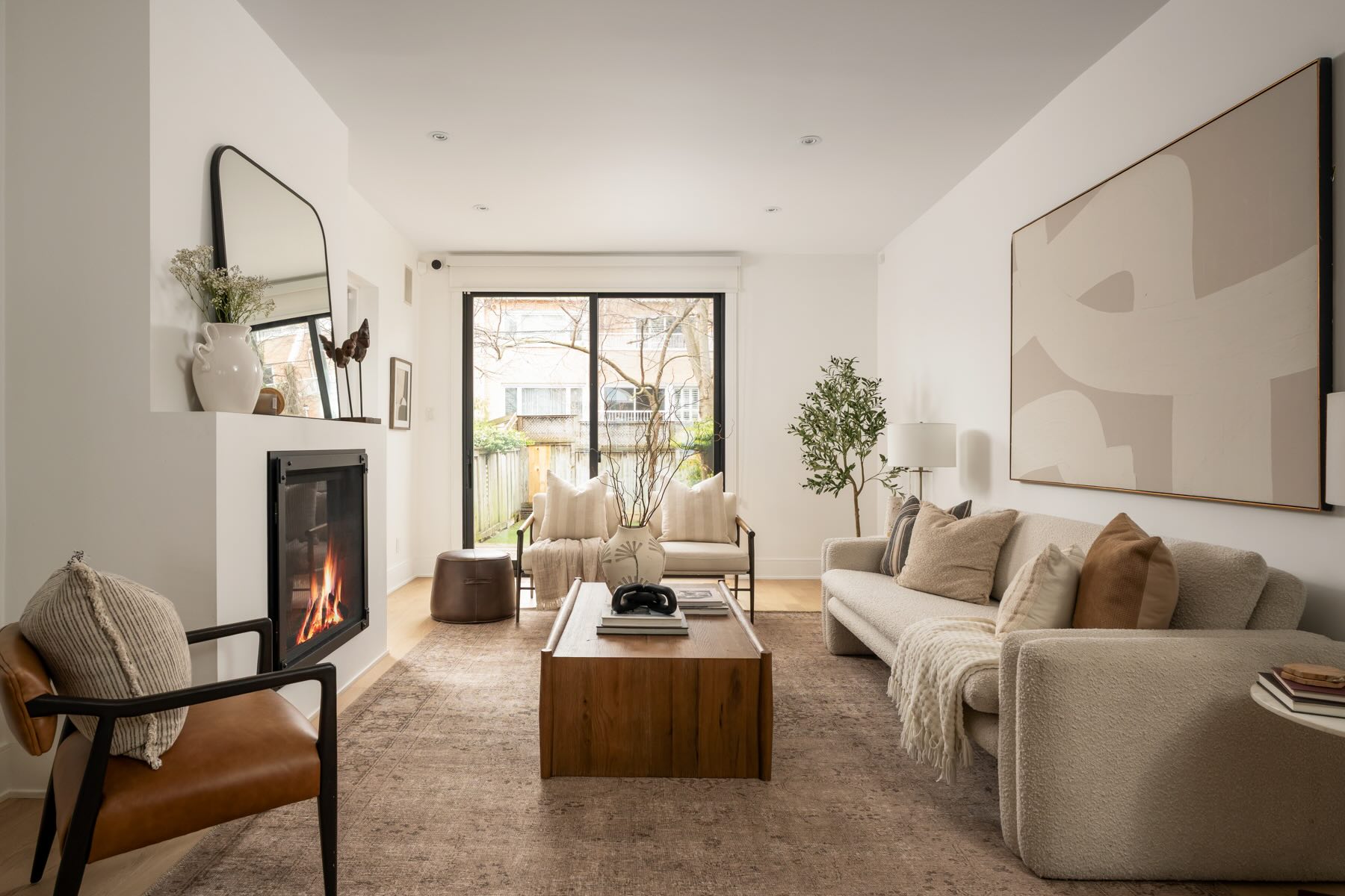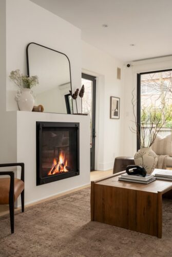The spacious living room centers around a cozy Heat & Glo gas fireplace, ideal for relaxing. Natural light pours in through a custom oversized sliding glass door that leads to a low-maintenance backyard with a step-out deck, turfed gardens, and a gas line for grilling. The heated alleyway and secure side access add convenience and privacy, making it a true year-round outdoor retreat.