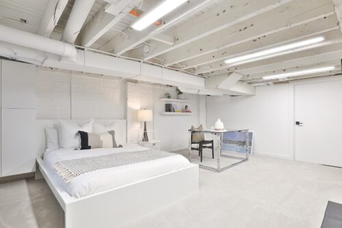 The lower level is finished with plush broadloom carpeting and features new cabinets to conceal electrical systems. A custom-built storage unit and crawl space door provide additional organization, making this home as practical as it is beautiful.