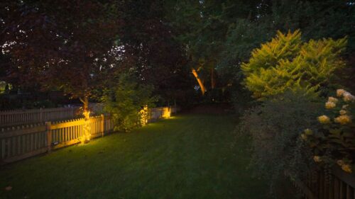 - 4-zone in-ground sprinkler system controlled by B-hyve outdoor rain sensor and weather forecasts