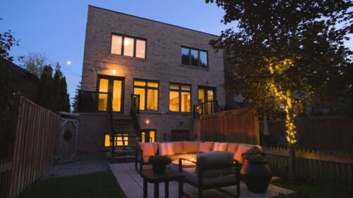 Carrying up to the second floor, an oversized skylight pours light into the centre of the home. The second floor offers three generous bedrooms, the largest of which, of course, is the primary suite at the rear of the home. The suite is king-sized and offers quiet views over the incredible garden below it. It is outfitted with a walk-in closet with fully customized interiors, a five-piece ensuite where Thassos marble lines the floors and shower, and a walnut double vanity topped with durable Caesarstone. Two additional bedrooms with customized closets share a three-piece bathroom, finished to the same high standard.