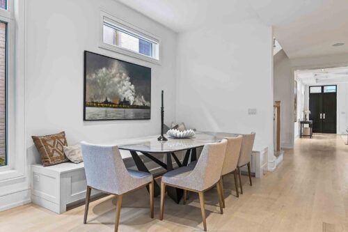 Set on the most incredible 31×179 foot lot in the heart of the Annex lies this completely custom eight year old new build, conceptualized by the existing owner to perfect the floor plan that an active urban family requires. Deep Georgian windows line the facade, while a more modern rear and third floor addition adds dimension and interest from the streetscape.