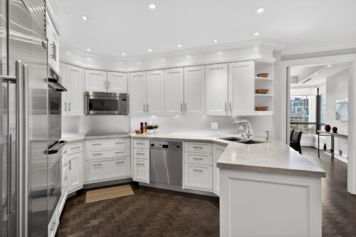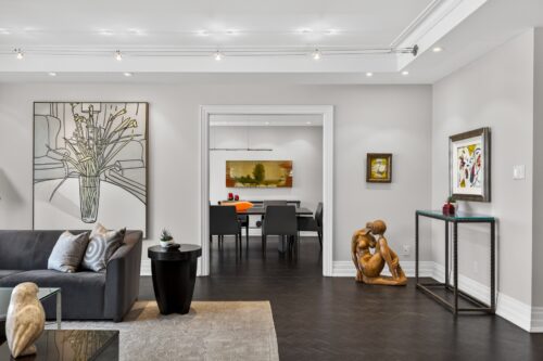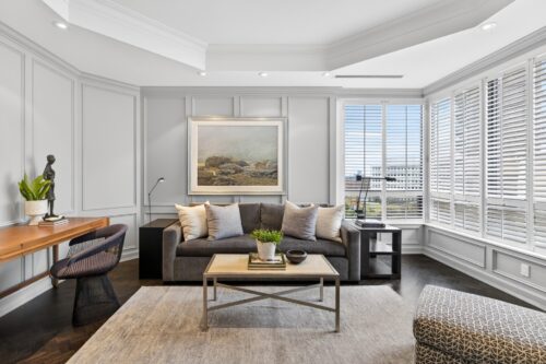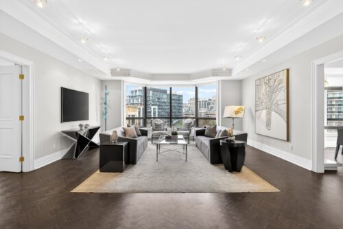 Spanning a total of 2964 square feet, the suite unfolds with intention and grace. A private suite lobby conceals the residence before opening to the vast and impressive floor plan beyond it. Principal spaces are elegantly poised and designed to allow for your large furnishings to “downsize” with you.